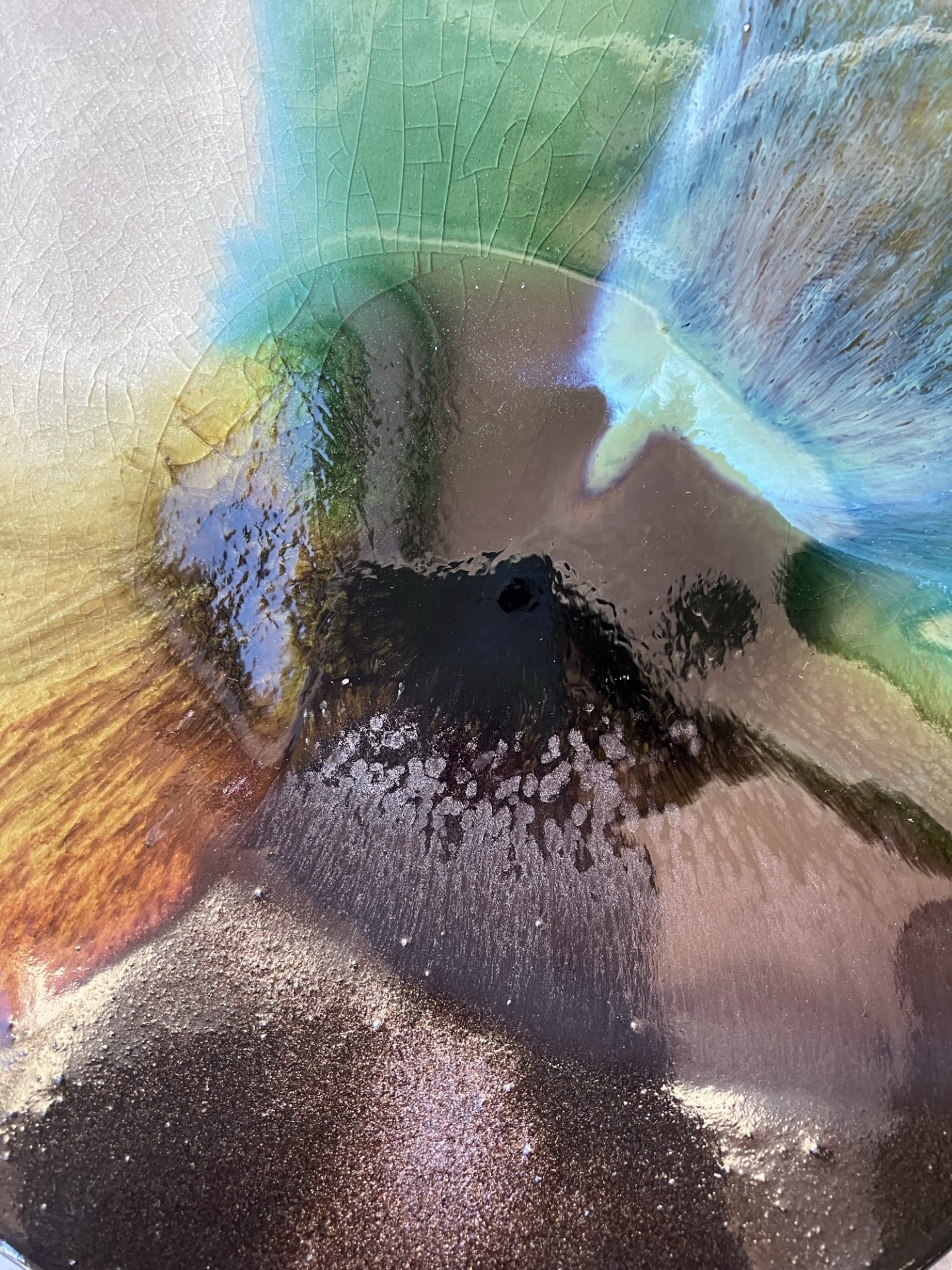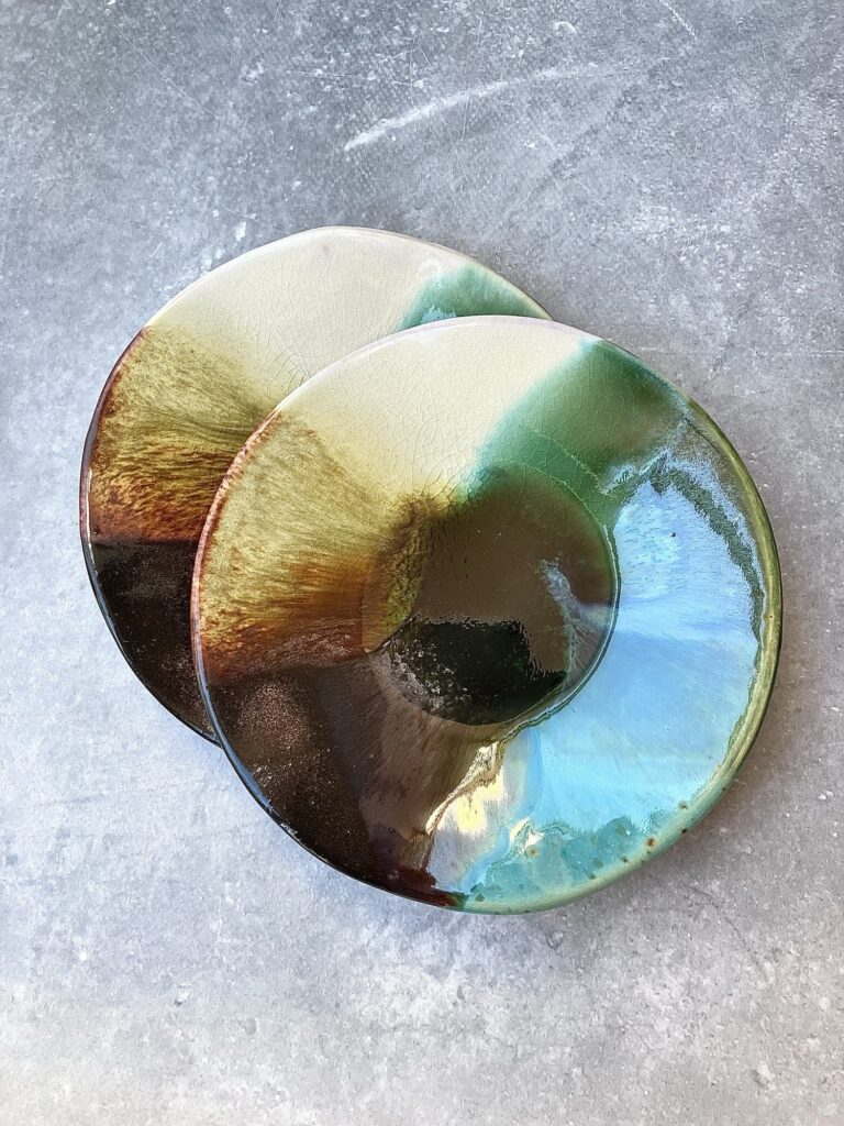 Talerzyk deserowy Galaxy to unikatowa ceramika inspirowana kosmiczną przestrzenią i naturalnymi zjawiskami światła. Ręcznie szkliwiona powierzchnia zachwyca płynnym przejściem barw – od głębokich błękitów i turkusów, przez zielenie, aż po ciepłe brązy i kremową biel. Każdy egzemplarz jest niepowtarzalny, a nieregularne granice kolorów przypominają mgławice i odległe galaktyki.