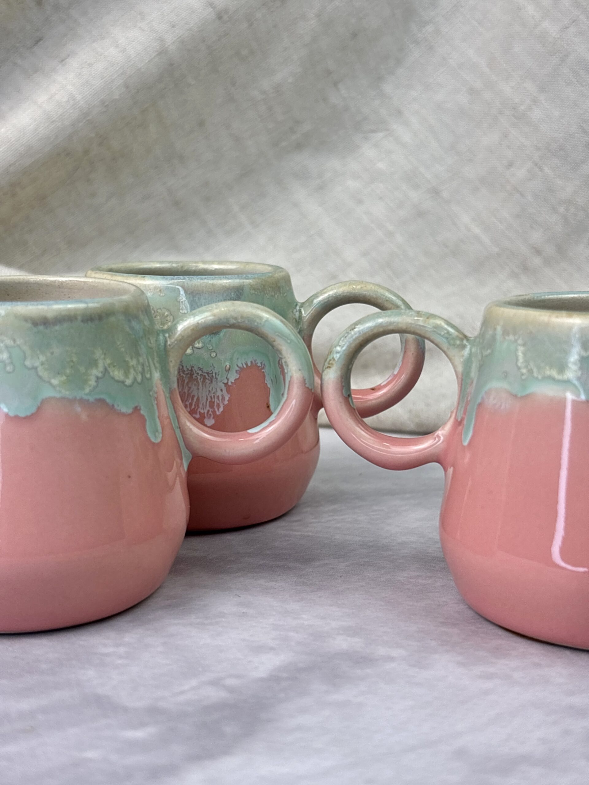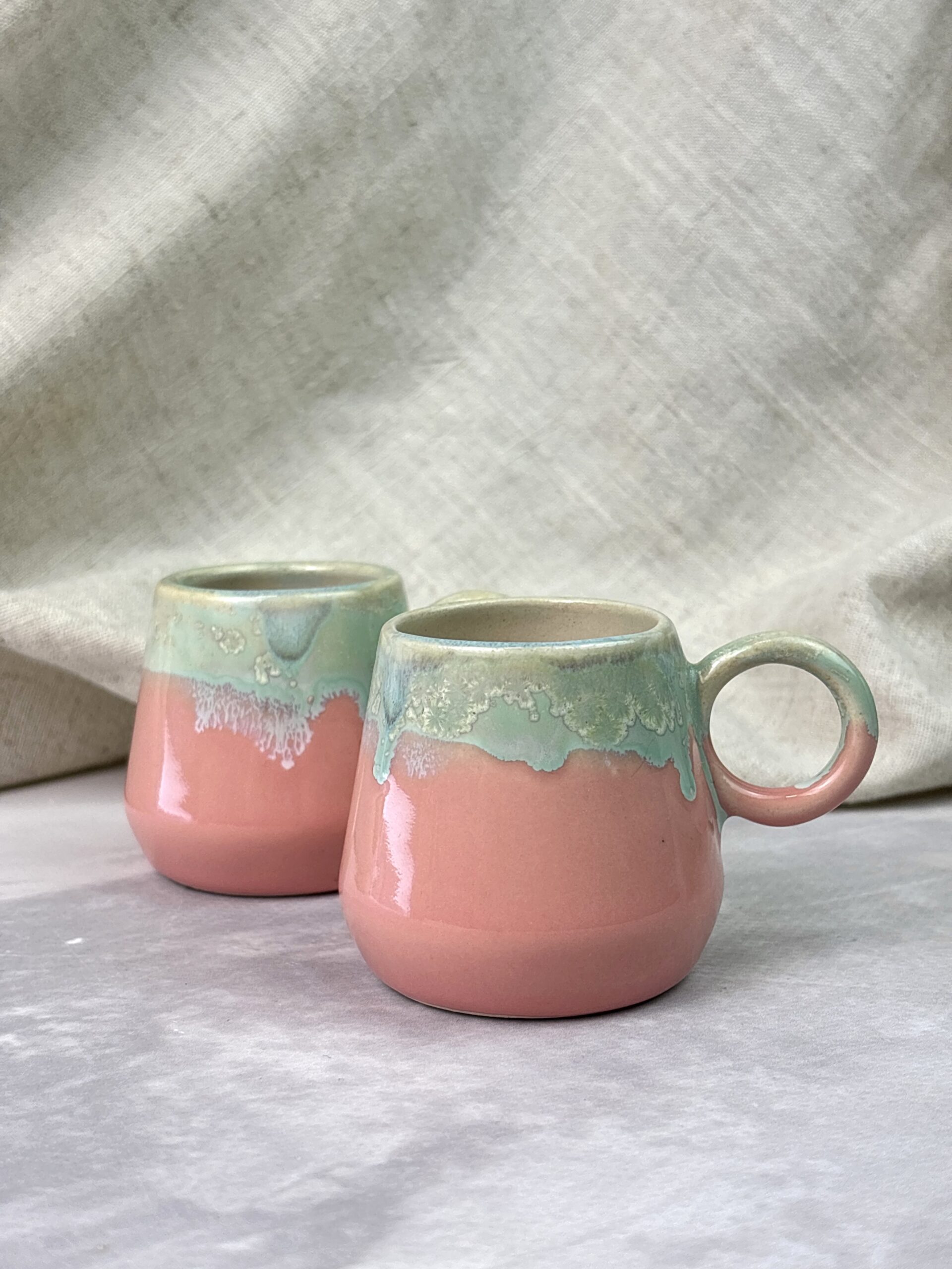 Filiżanka PINK SAND to ceramiczny zapis podróży do miejsc, w których natura maluje najpiękniejsze krajobrazy. Seria ta łączy w sobie delikatność pudrowego różu z energią świeżej, morskiej zieleni, tworząc kojący duet, który wnosi do wnętrza spokój i nowoczesną elegancję.
