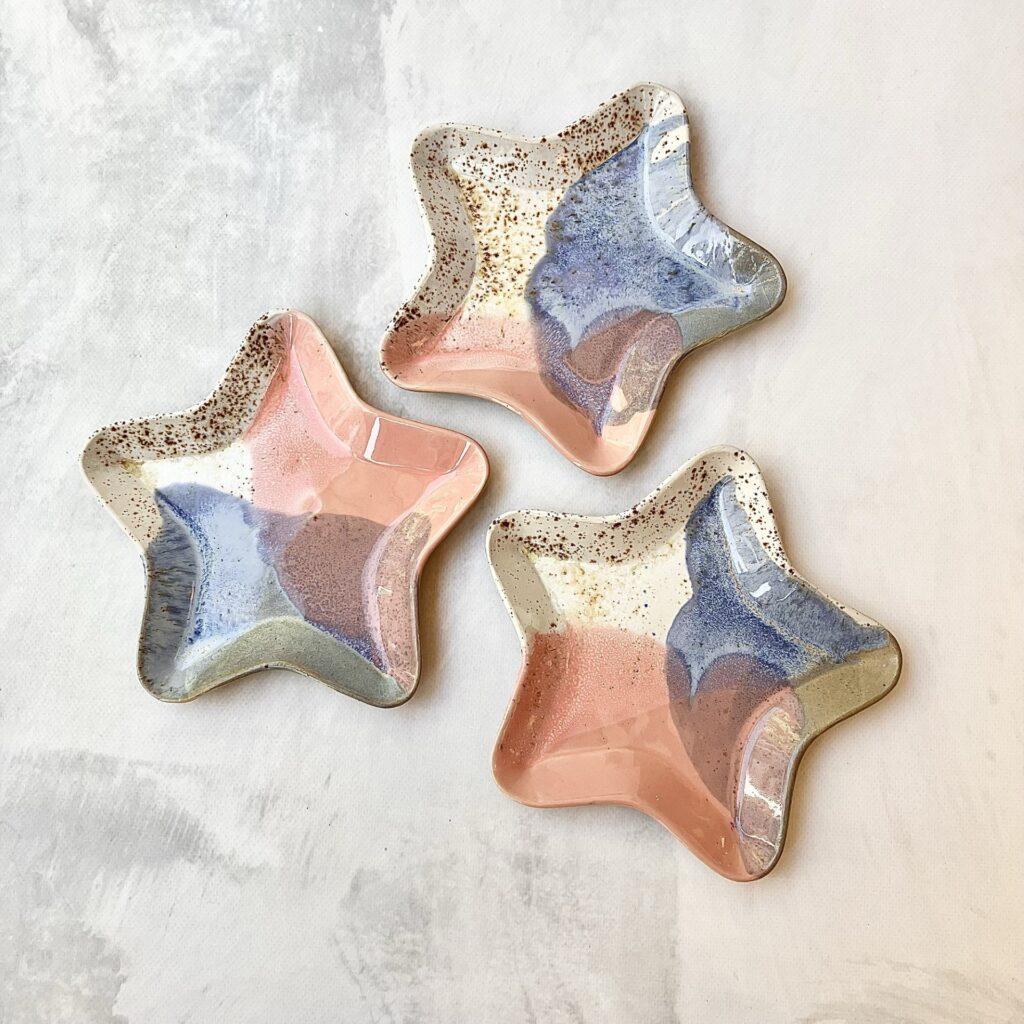 Każda gwiazdka może różnić się delikatnie we wzorach i kolorach, gdyż produkty wyrabiam oraz szkliwię ręcznie. To w ceramice kocham najmocniej – wszystko ma swoją oryginalność i niepowtarzalność.