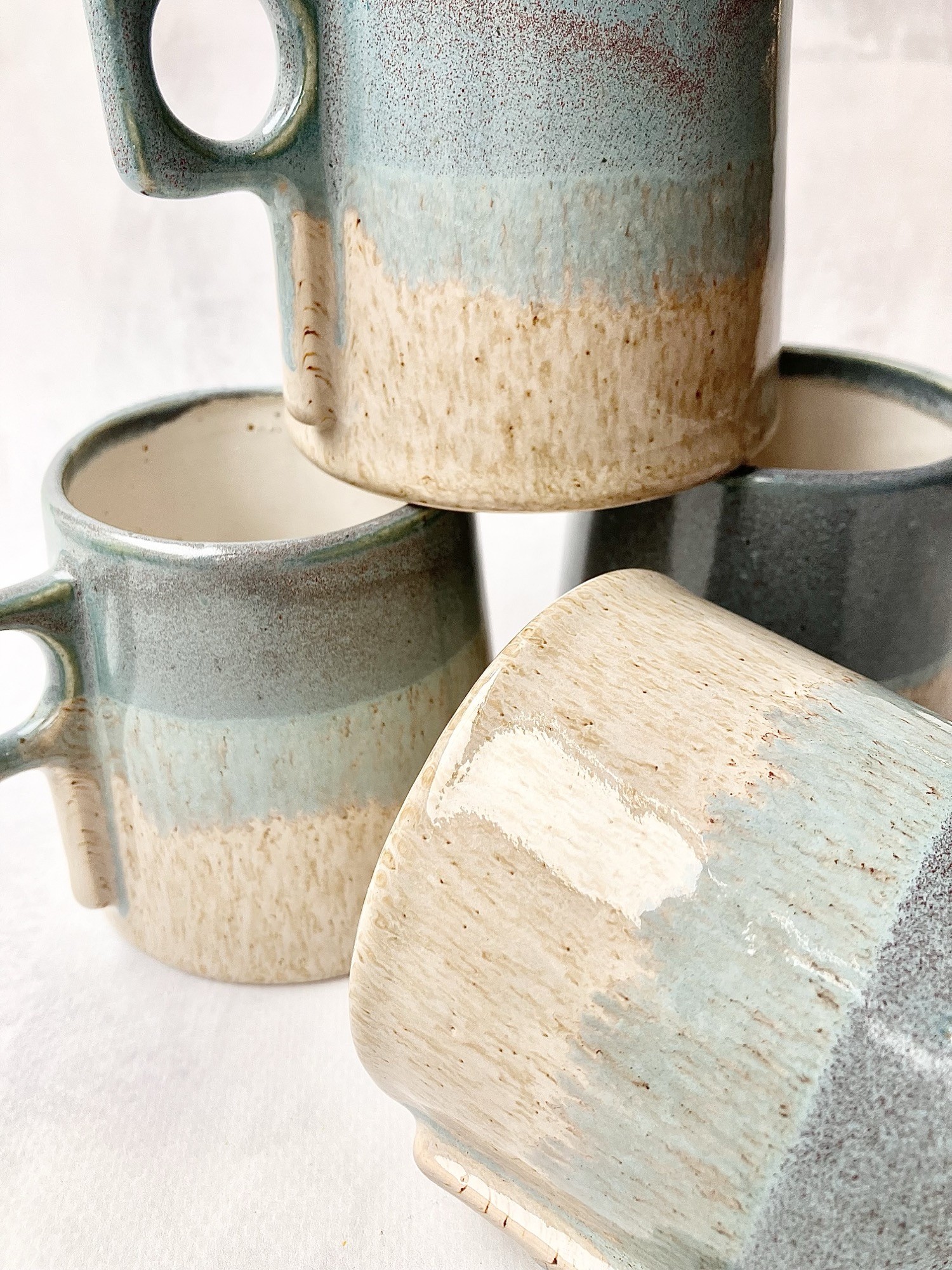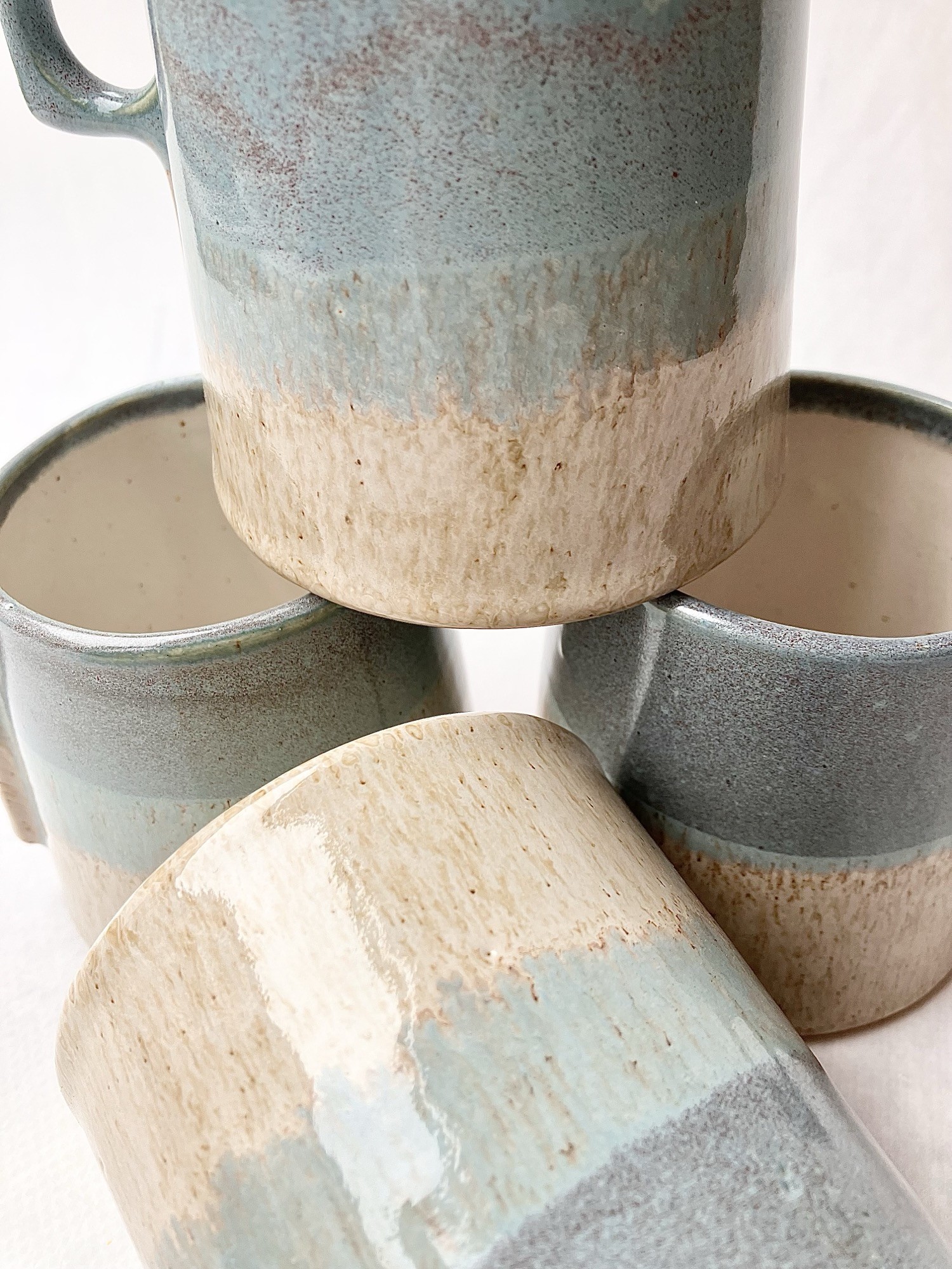 KUBEK *BLUE* oblany słodkimi odcieniami błękitu i beżu, aby Twoja poranna kawa smakowała wyśmienicie. Idealny towarzysz poranków z kawą/herbatą.
