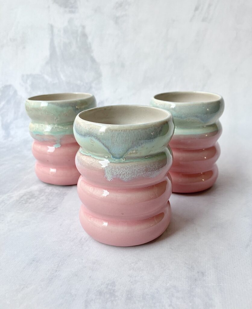 Każdy kubek może różnić się delikatnie we wzorach i kolorach, gdyż produkty wyrabiam oraz szkliwię ręcznie. To w ceramice kocham najmocniej – wszystko ma swoją oryginalność i niepowtarzalność.