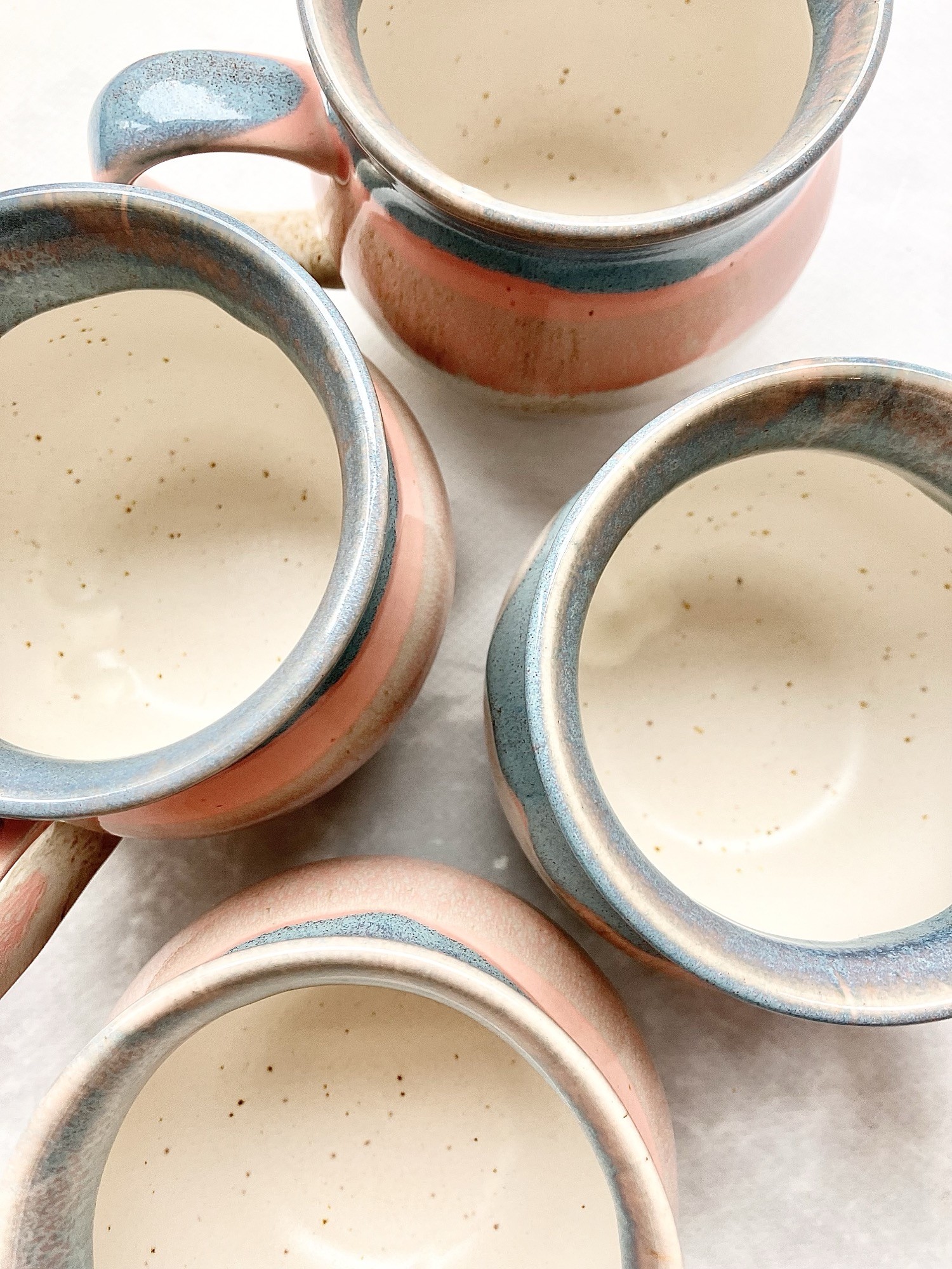 Każdy kubek może różnić się delikatnie we wzorach i kolorach, gdyż produkty wyrabiam oraz szkliwię ręcznie. To w ceramice kocham najmocniej – wszystko ma swoją oryginalność i niepowtarzalność.