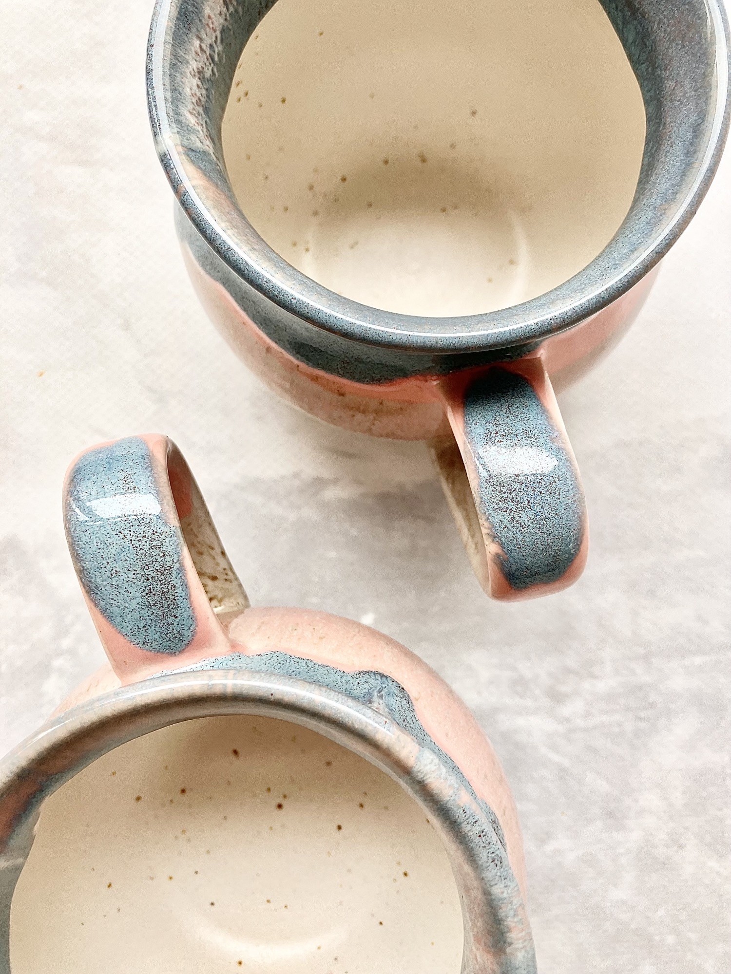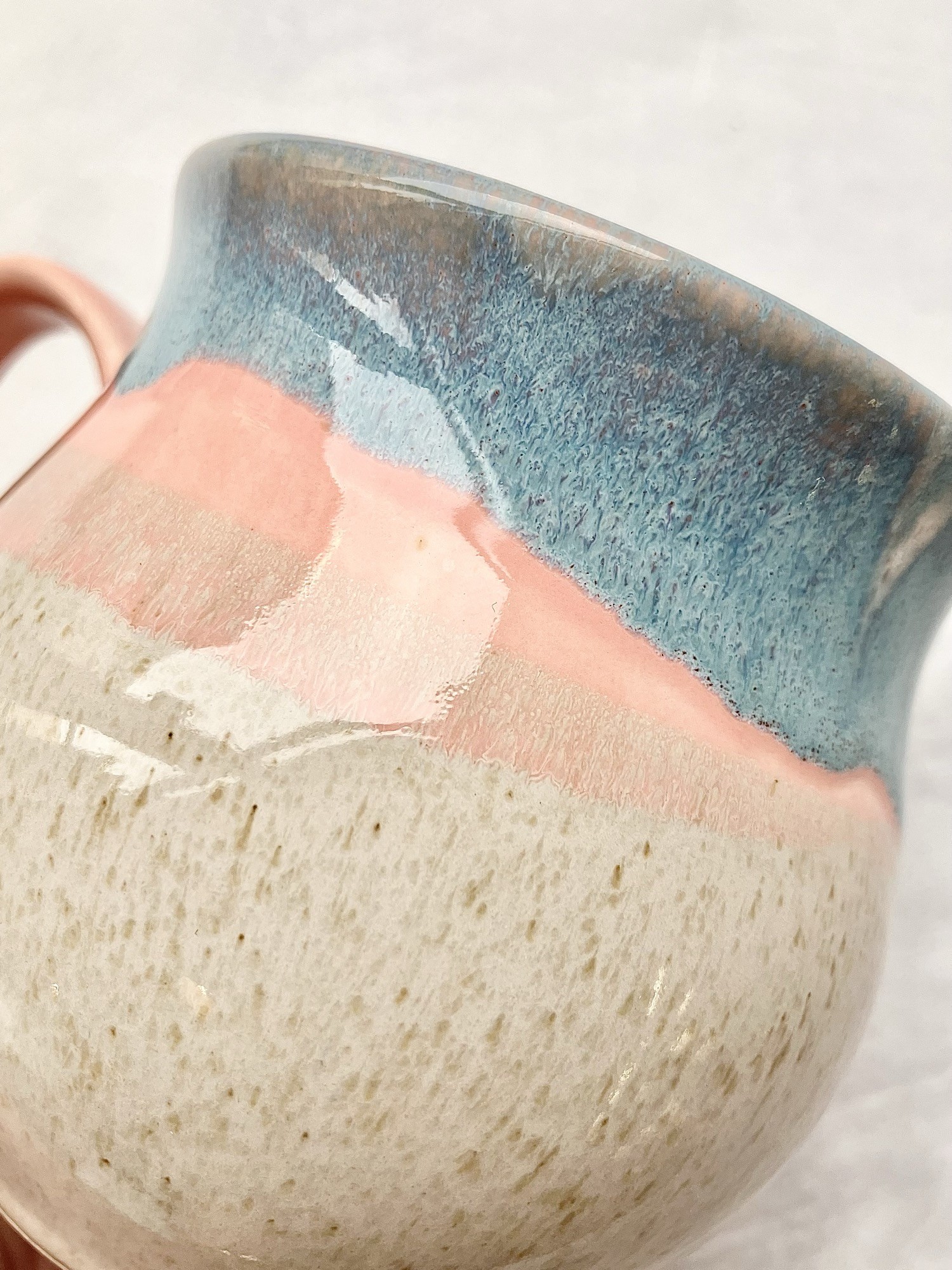 KUBEK *SAND* to połączenie uroczego kształtu i ślicznego przejścia różu, niebieskiego i piaskowego beżu. Ten słodki kubeczek poprawi Ci nastrój każdego poranka. Idealny do kawy i herbaty.