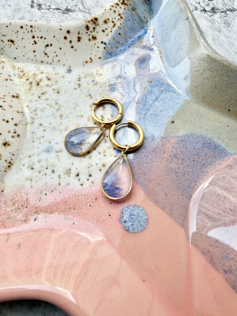 Zapraszamy do odkrycia naszych wyjątkowych kolczyków, które harmonijnie łączą naturalne piękno z nowoczesną elegancją. Wykonane z trwałej stali chirurgicznej 316L, nasze kolczyki to idealny wybór dla osób ceniących subtelność, delikatność i wyjątkowy styl. Każda para jest unikalna, a zatopione w nich suszone kwiaty sprawiają, że każdy egzemplarz to prawdziwe dzieło sztuki.