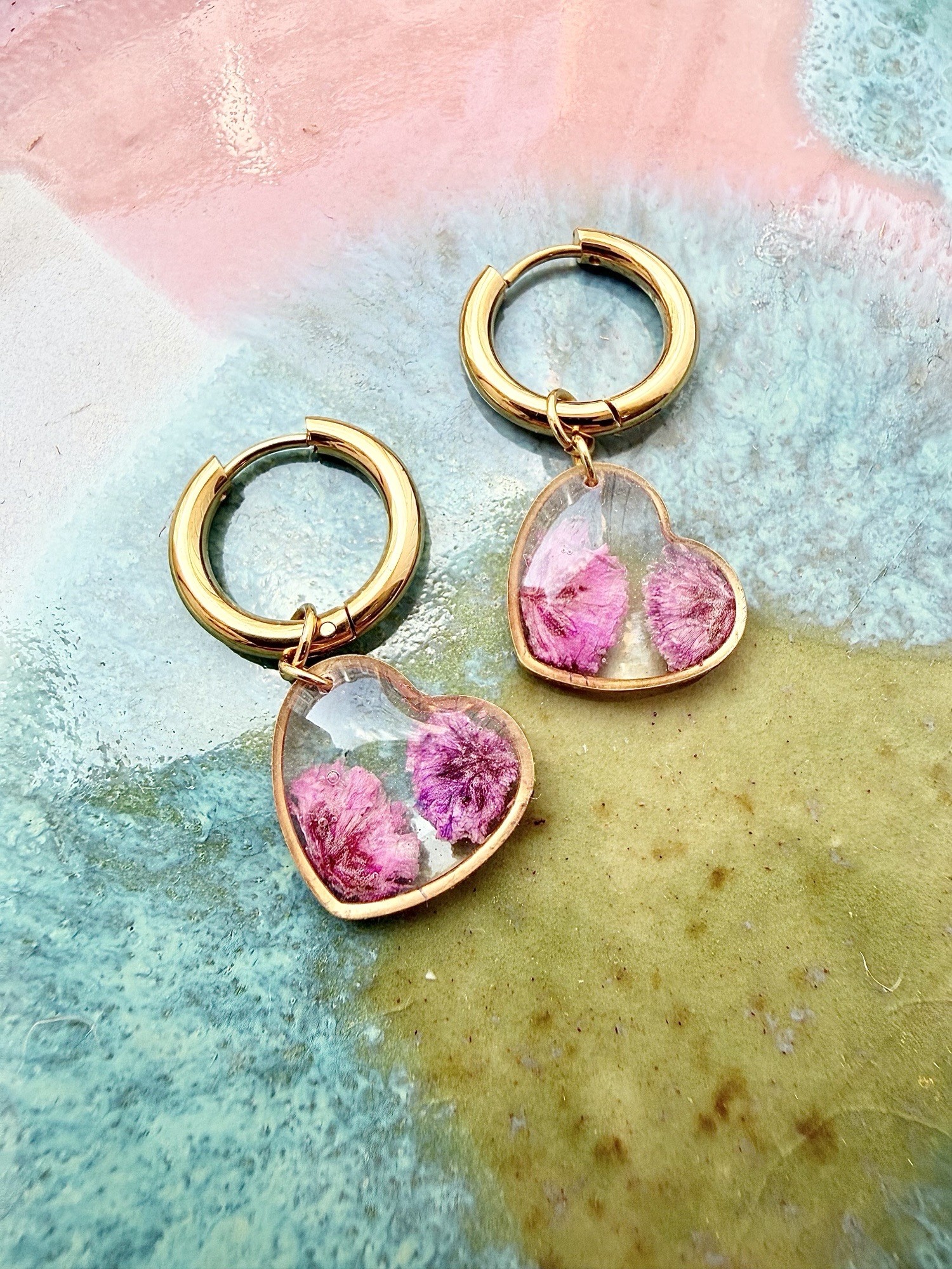 Zapraszamy do odkrycia naszych wyjątkowych kolczyków, które harmonijnie łączą naturalne piękno z nowoczesną elegancją. Wykonane z trwałej stali chirurgicznej 316L, nasze kolczyki to idealny wybór dla osób ceniących subtelność, delikatność i wyjątkowy styl. Każda para jest unikalna, a zatopione w nich suszone kwiaty sprawiają, że każdy egzemplarz to prawdziwe dzieło sztuki.