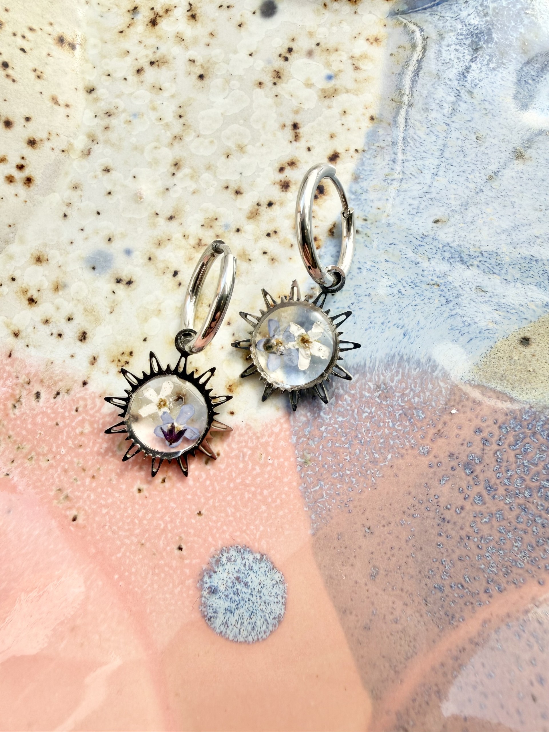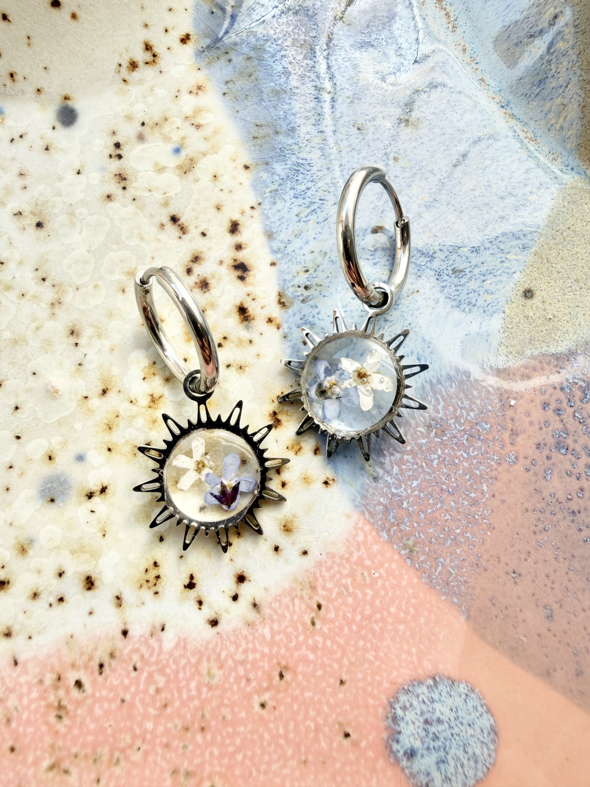 Zapraszamy do odkrycia naszych wyjątkowych kolczyków, które harmonijnie łączą naturalne piękno z nowoczesną elegancją. Wykonane z trwałej stali chirurgicznej 316L, nasze kolczyki to idealny wybór dla osób ceniących subtelność, delikatność i wyjątkowy styl. Każda para jest unikalna, a zatopione w nich suszone kwiaty sprawiają, że każdy egzemplarz to prawdziwe dzieło sztuki.