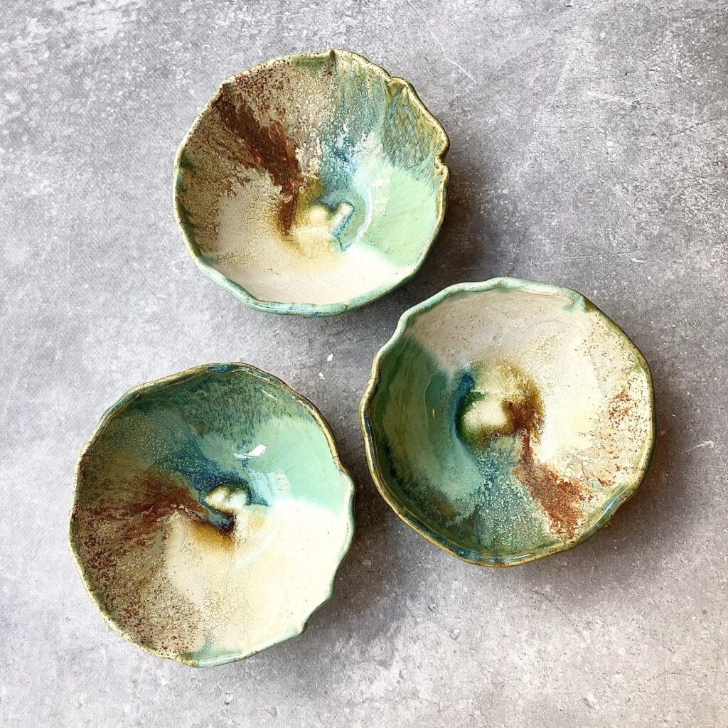 Każda miseczka może różnić się delikatnie we wzorach i kolorach, gdyż produkty wyrabiam oraz szkliwię ręcznie. To w ceramice kocham najmocniej – wszystko ma swoją oryginalność i niepowtarzalność.