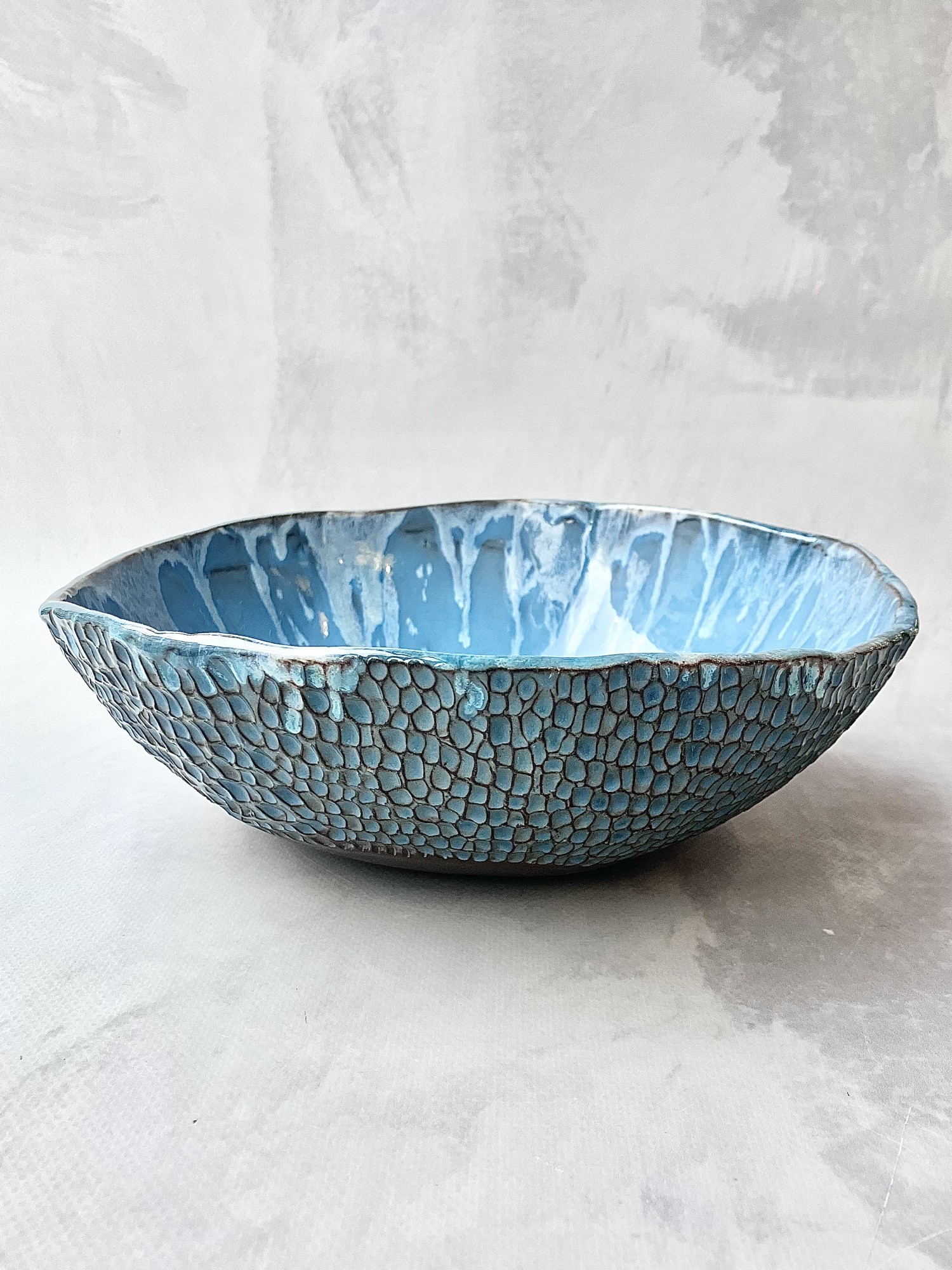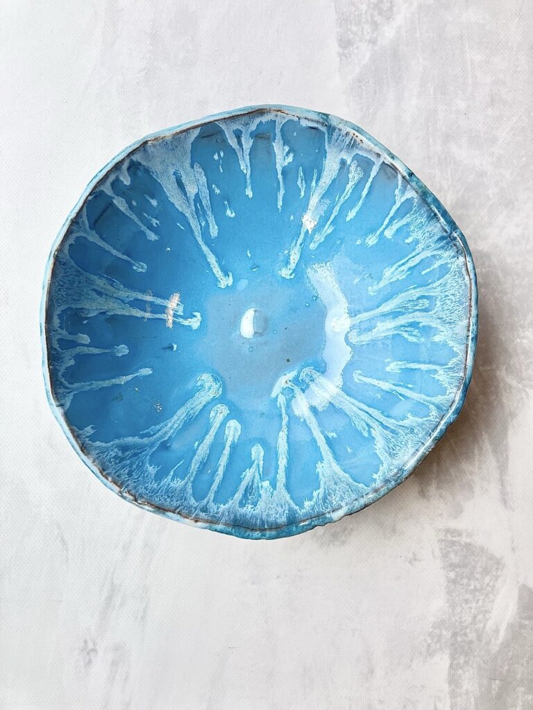 Miska BLUE HEAVEN idealnie sprawdzi się do serwowania sałatek, owoców, makaronów, zup, a także jako dekoracyjny element stołu lub wnętrza. To połączenie funkcjonalności i sztuki użytkowej, stworzone z myślą o osobach ceniących oryginalne, ręcznie wykonane przedmioty.