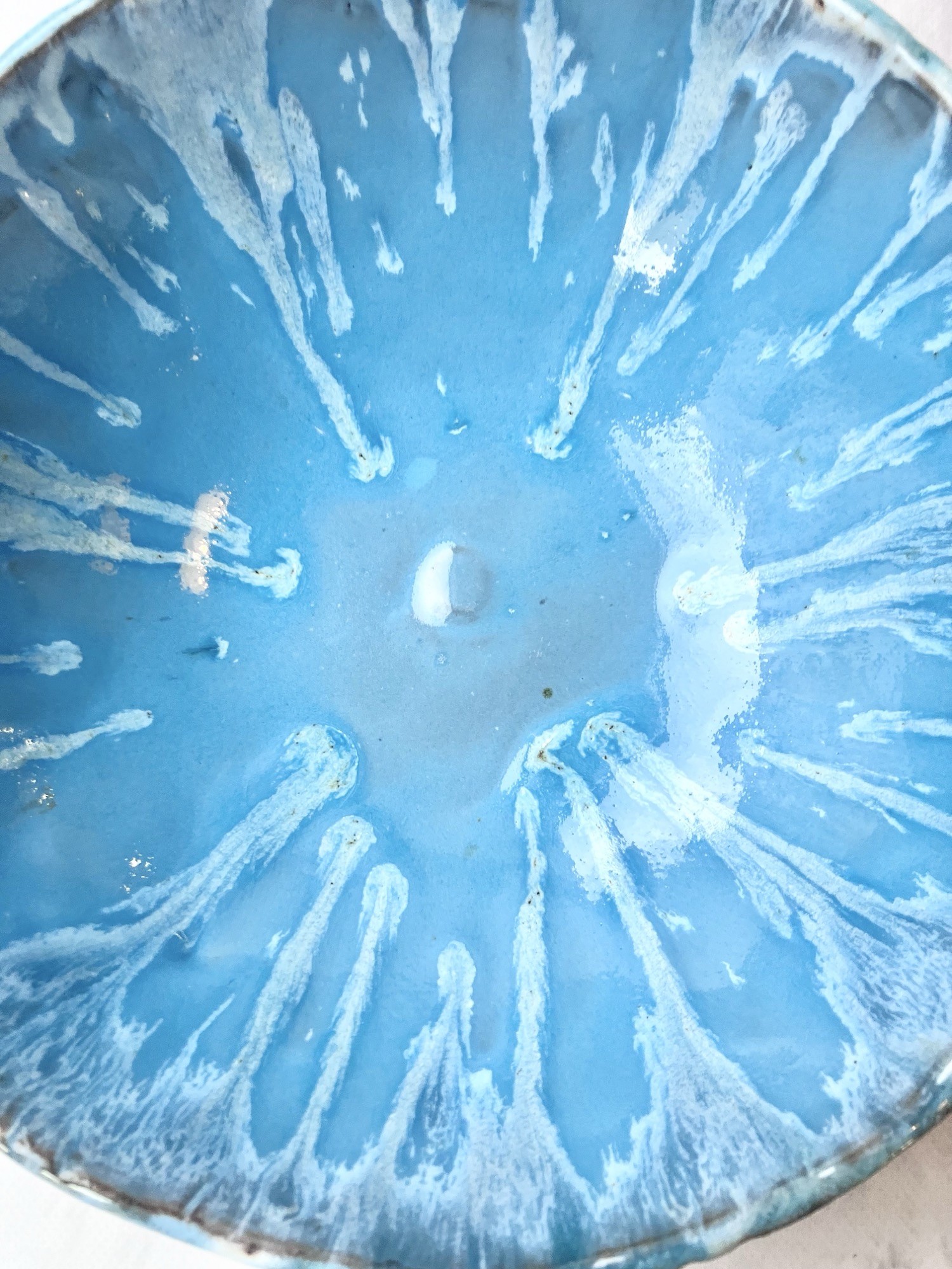 Miska BLUE HEAVEN to wyjątkowe naczynie z gliny, które zachwyca intensywną, niebieską kolorystyką i niepowtarzalnym efektem szkliwa. Wnętrze miski pokryte jest głębokim odcieniem błękitu z jasnymi, promienistymi spływami szkliwa , przywodzące na myśl wodę, światło i niebo- każdy egzemplarz tworzy unikalny, niemal malarski wzór.