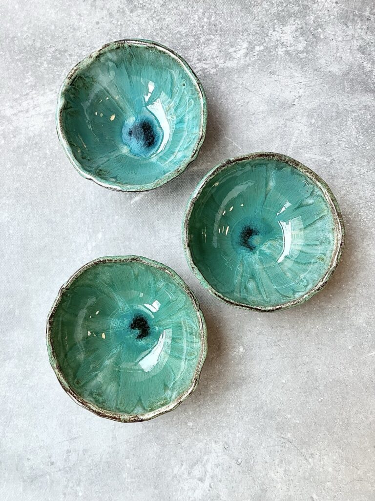 Każda miseczka może różnić się delikatnie we wzorach i kolorach, gdyż produkty wyrabiam oraz szkliwię ręcznie. To w ceramice kocham najmocniej – wszystko ma swoją oryginalność i niepowtarzalność.