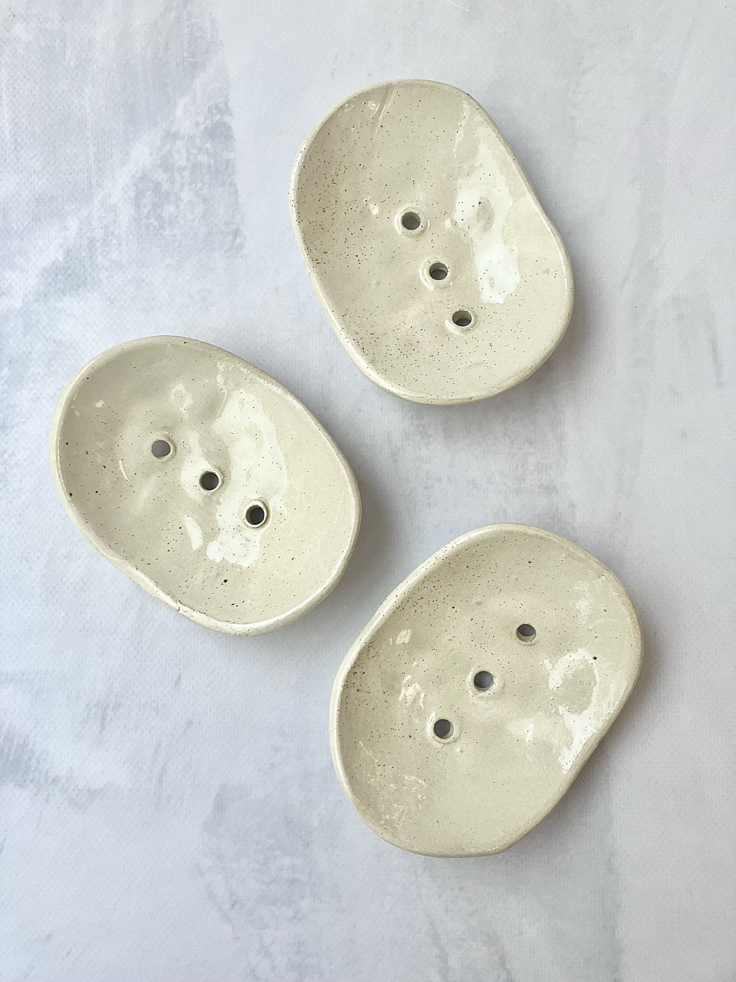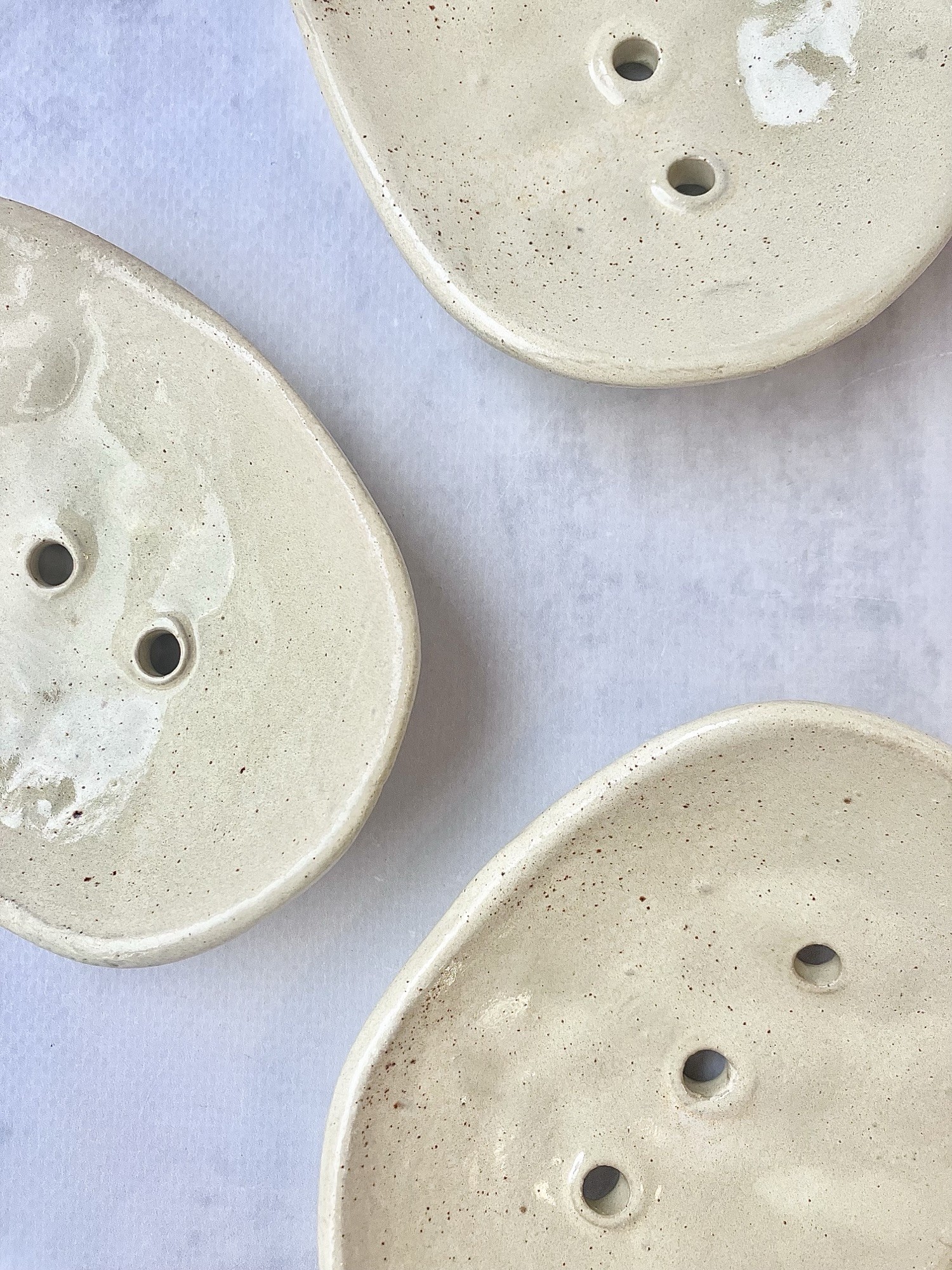 Minimalistyczna, ręcznie wykonana mydelniczka ceramiczna w kolorze piaskowego beżu. Delikatne nóżki unoszą ją nad powierzchnię blatu, dzięki czemu mydło szybciej wysycha i nie stoi w wodzie. Trzy otwory odpływowe zapewniają dobrą cyrkulację powietrza i praktyczne użytkowanie na co dzień.