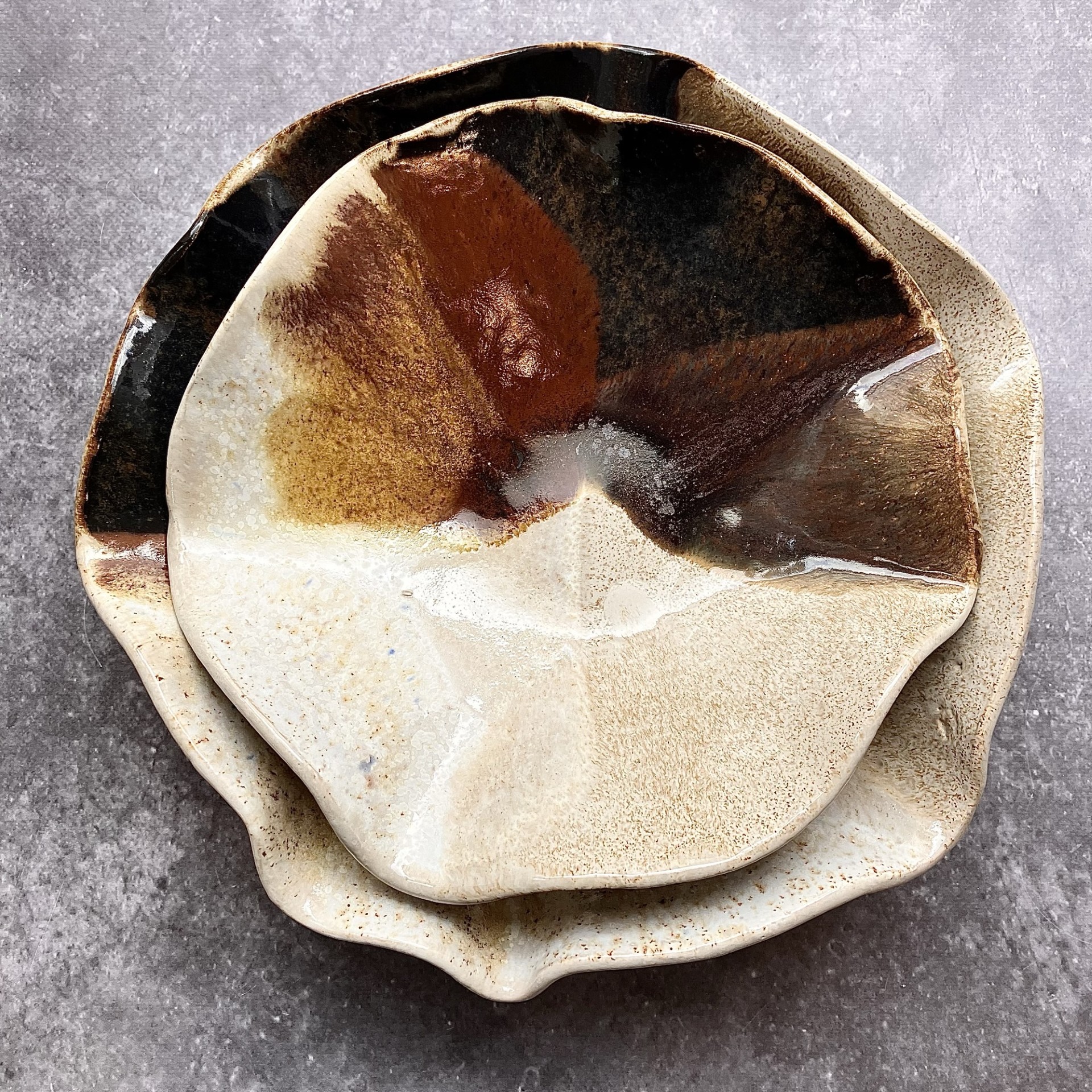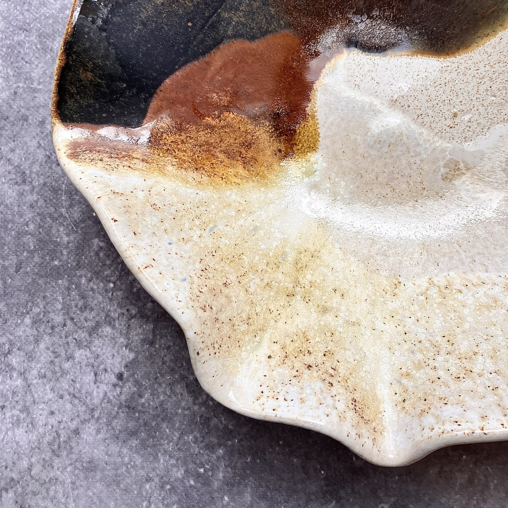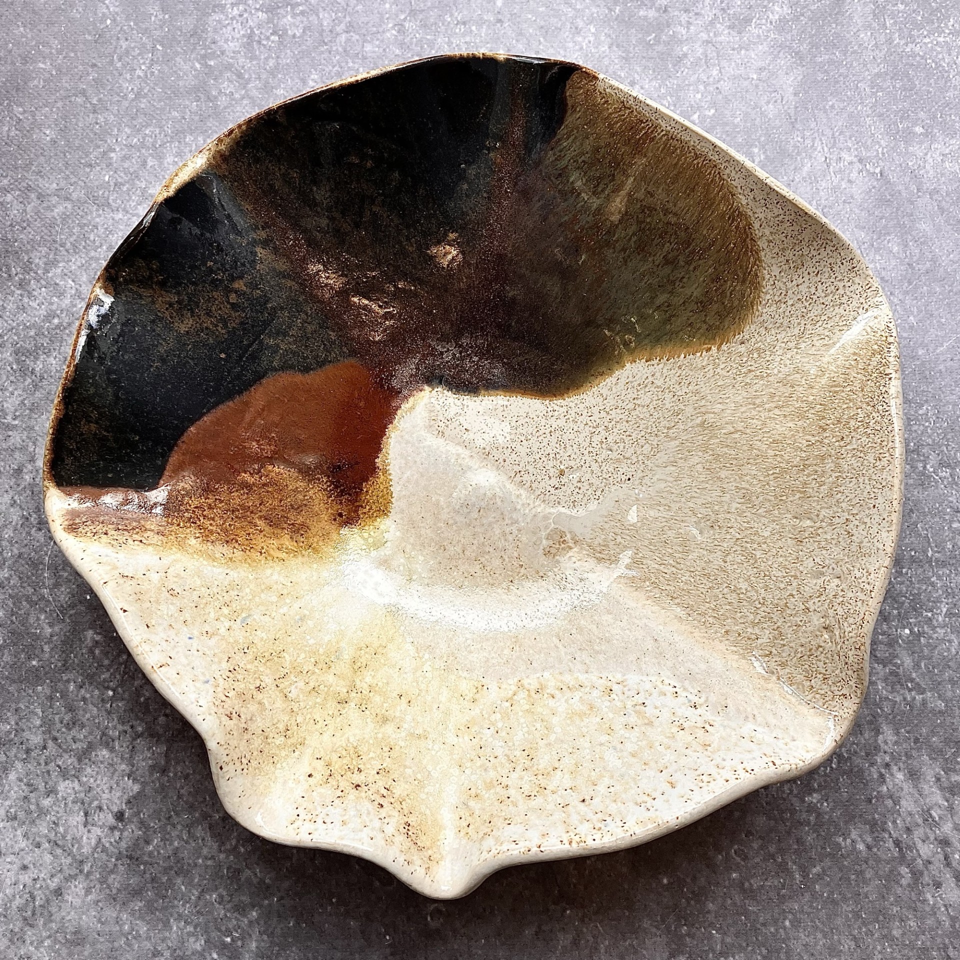 Patera BURSZTYN charakteryzuje się falistymi brzegami i przenikającymi odcieniami brązu. Sprawdzi się idealnie na owoce lub jako piękna dekoracja w twoim domu.