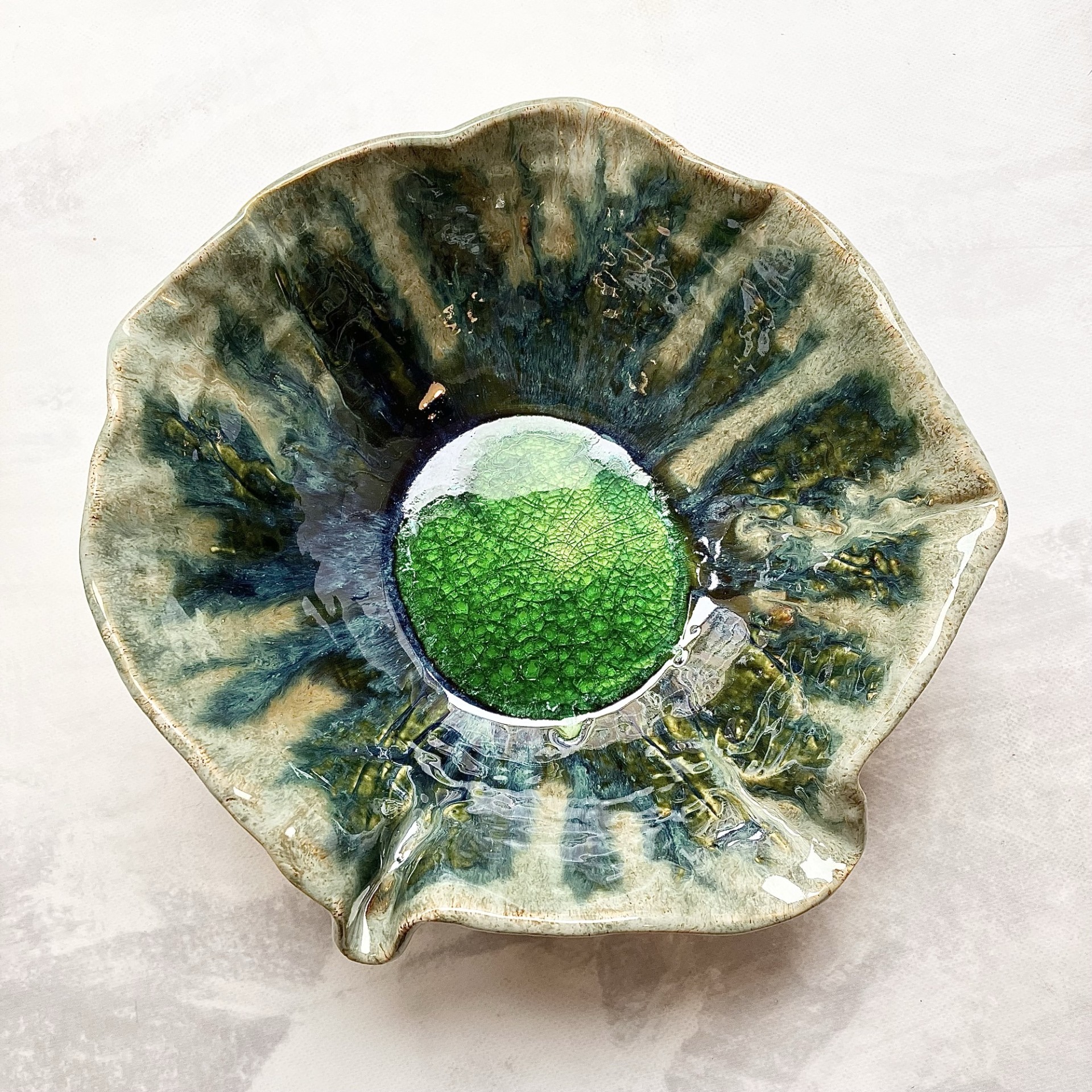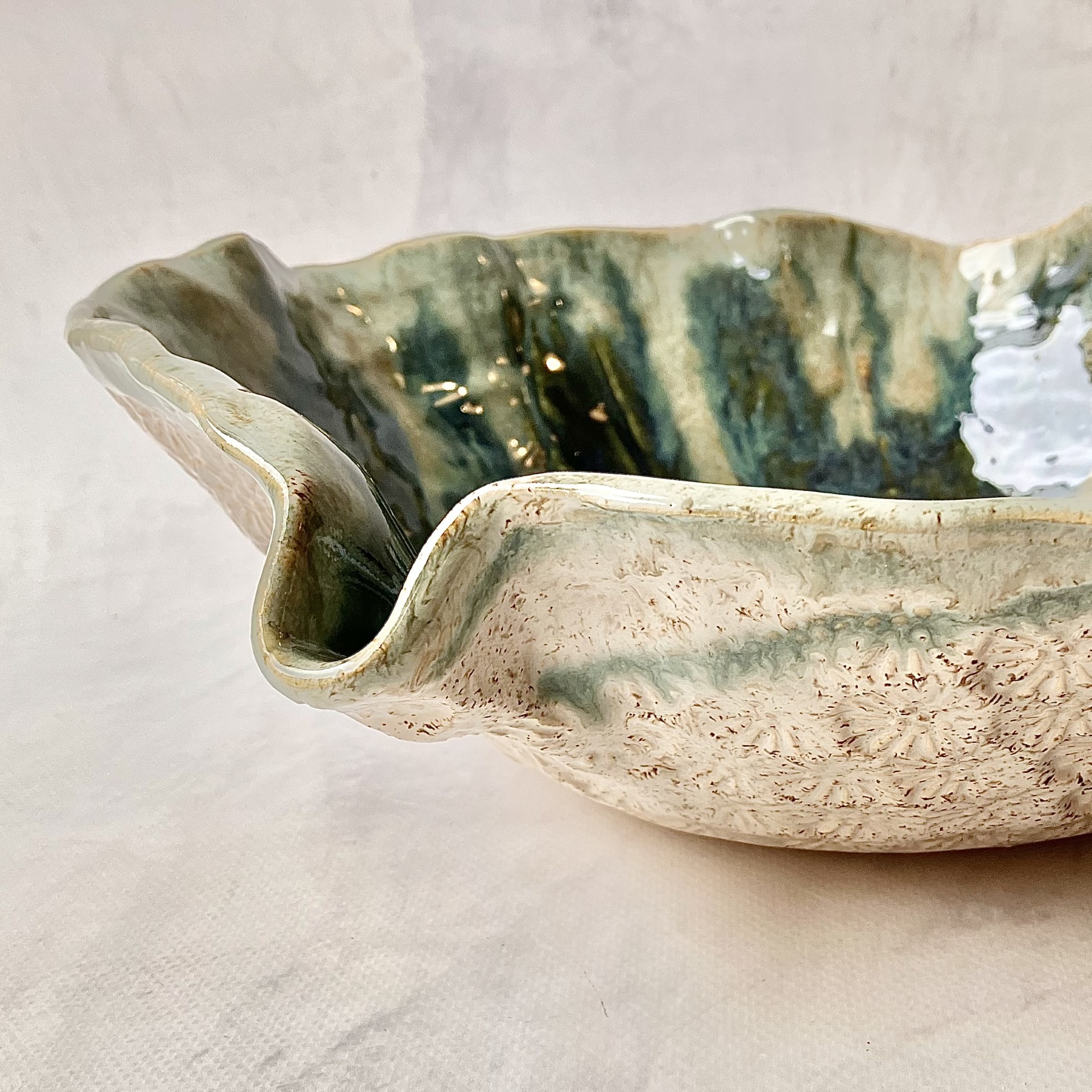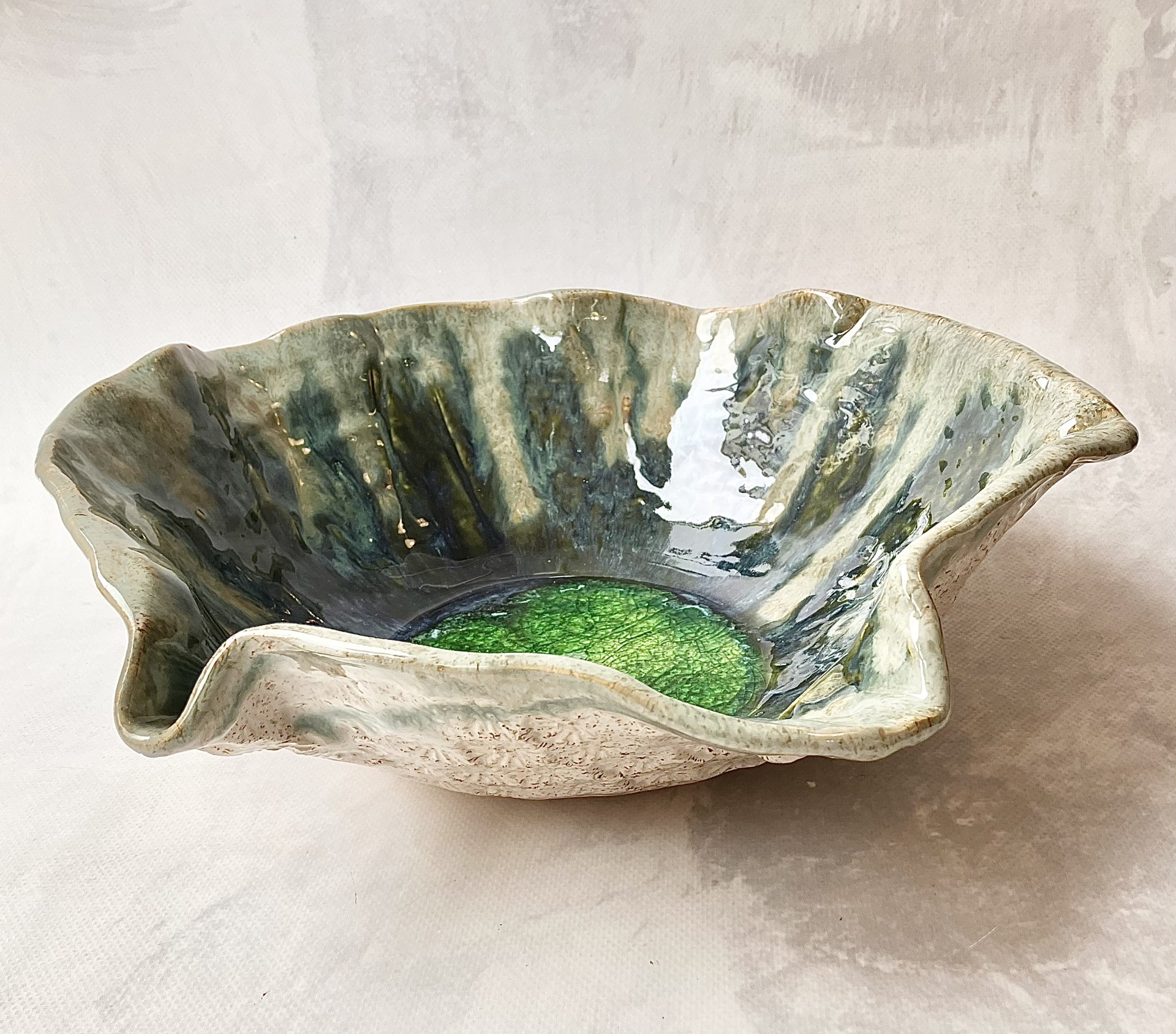 PATERA *DEEP INTO THE SEA. GREEN* to piękne połączenie zieleni i niezwykłej formy niczym z morskich głębin. Sprawdzi się idealnie na owoce lub jako element dekoracyjny w twoim domu.