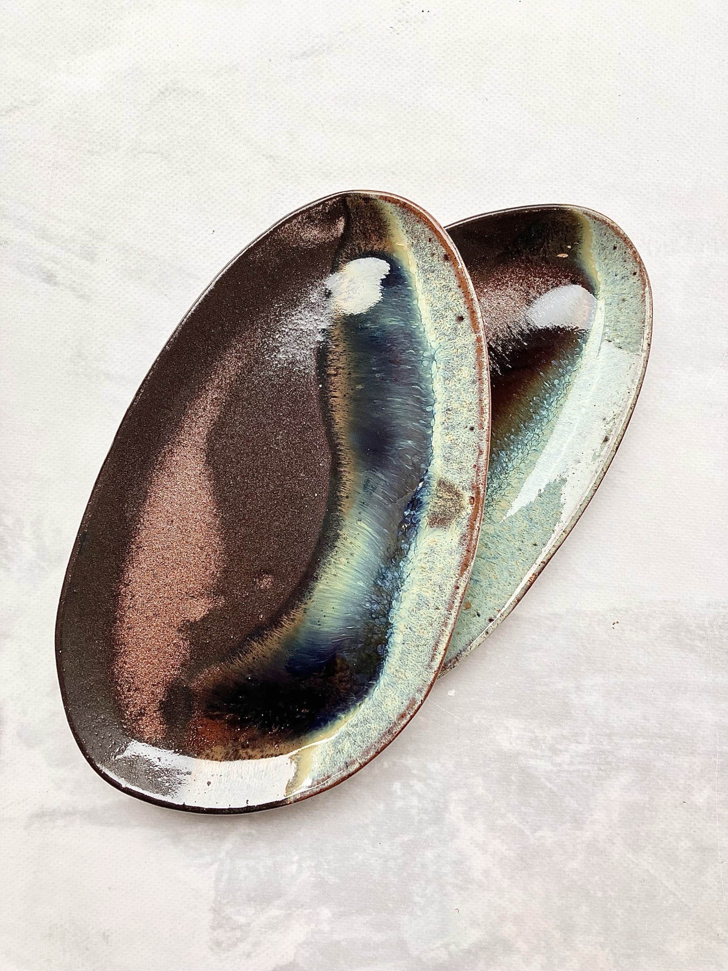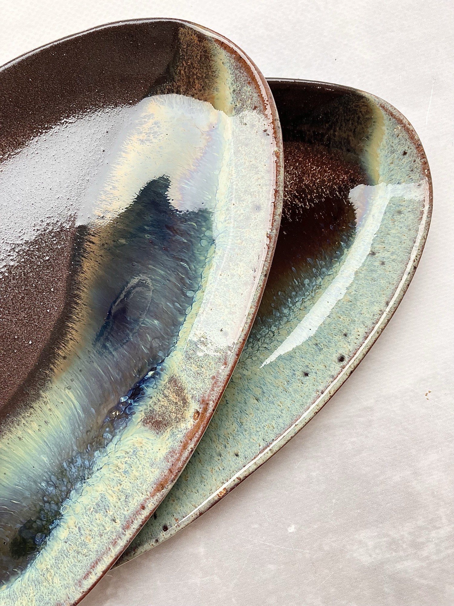 Każda patera może różnić się delikatnie we wzorach i kolorach, gdyż produkty wyrabiam oraz szkliwię ręcznie. To w ceramice kocham najmocniej – wszystko ma swoją oryginalność i niepowtarzalność.
