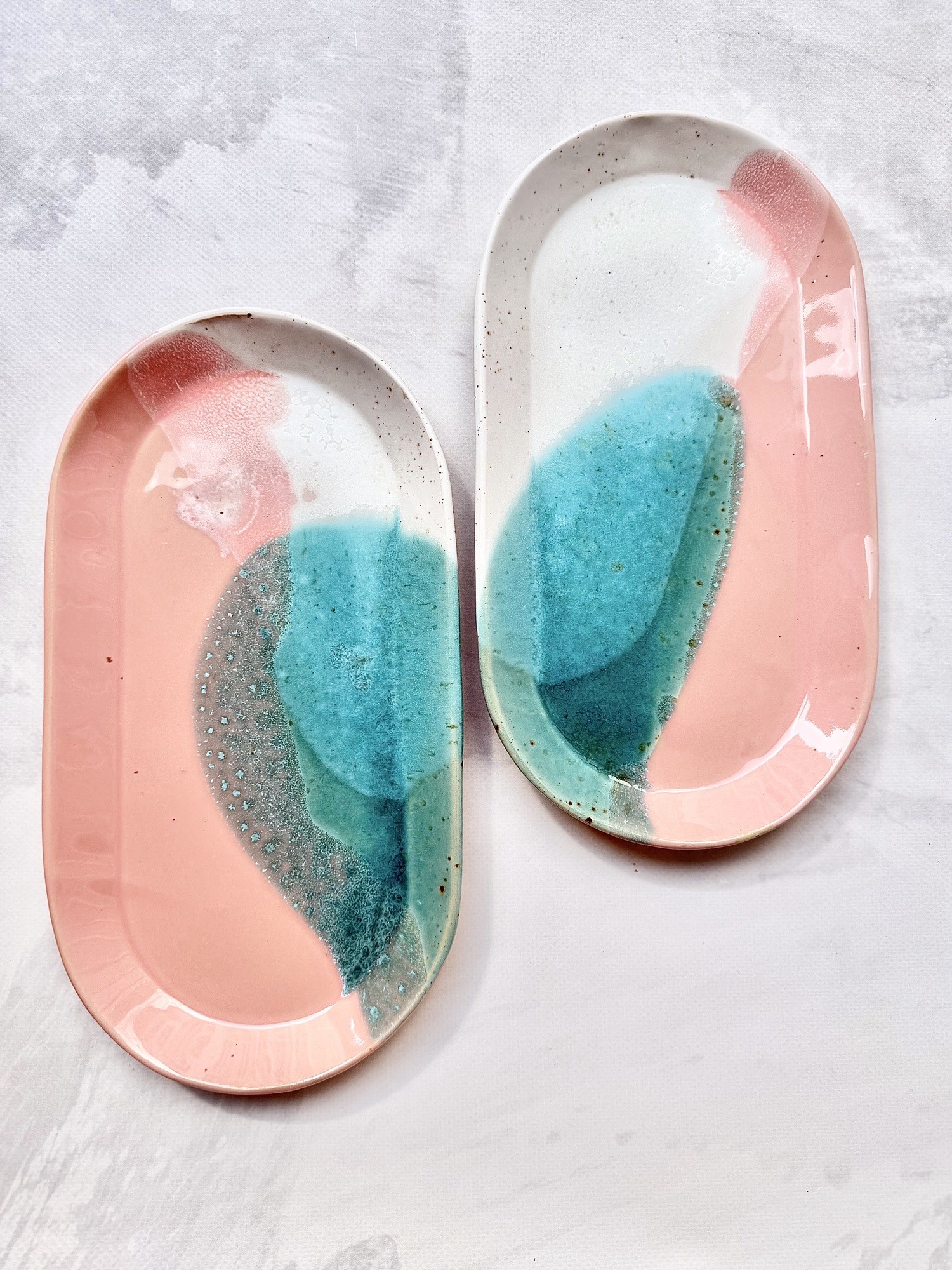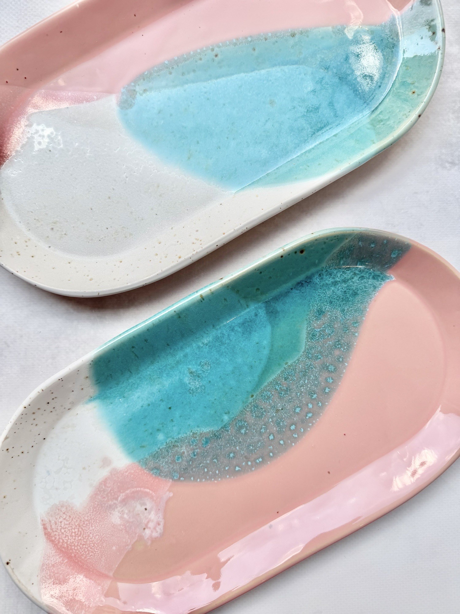 Każda patera może różnić się delikatnie we wzorach i kolorach, gdyż produkty wyrabiam oraz szkliwię ręcznie. To w ceramice kocham najmocniej – wszystko ma swoją oryginalność i niepowtarzalność.