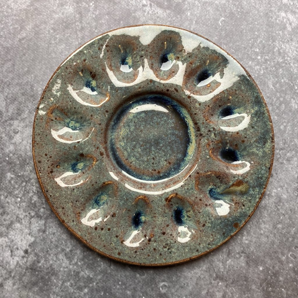 PATERA NA JAJKA *GREEN* to połączenie eleganckiej formy i pięknych przejść granatu i zieleni. Umili każde śniadanie i stanie się piękną ozdobą w twojej kuchni.
