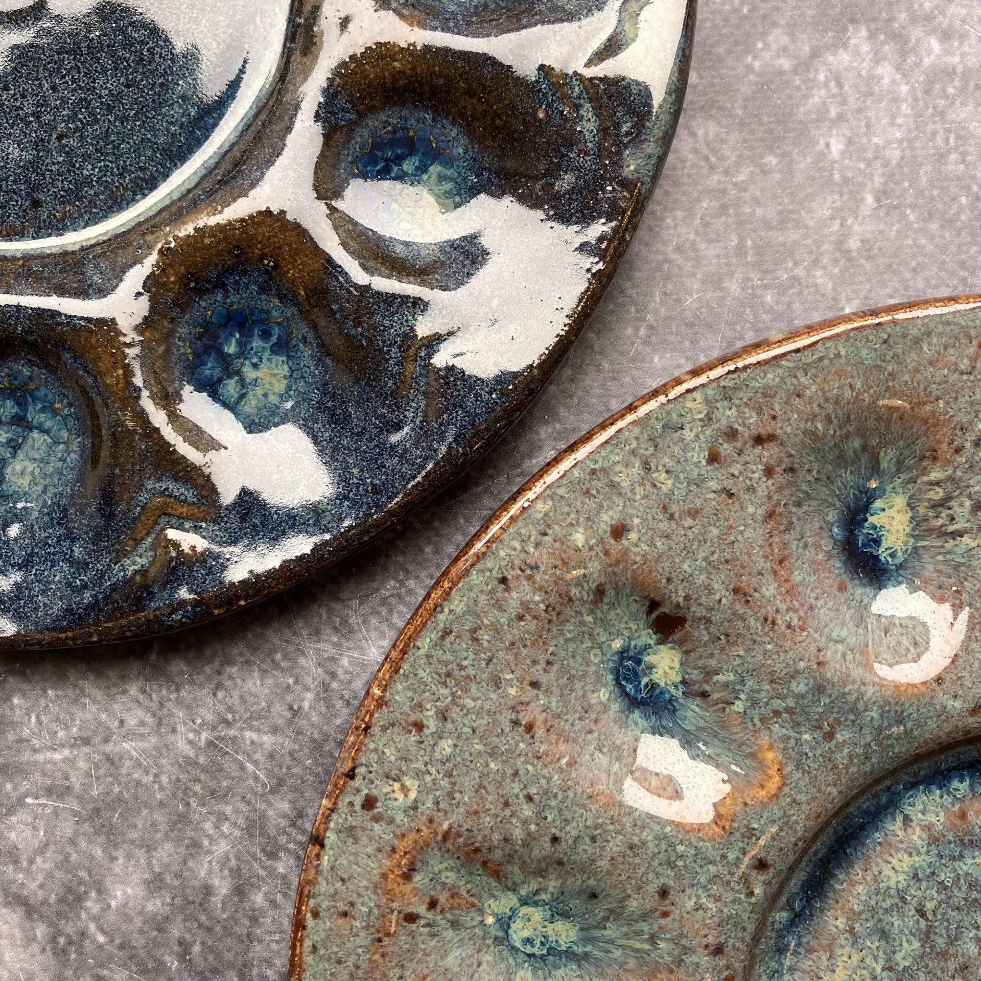 Każda patera może różnić się delikatnie we wzorach i kolorach, gdyż produkty wyrabiam oraz szkliwię ręcznie. To w ceramice kocham najmocniej – wszystko ma swoją oryginalność i niepowtarzalność.