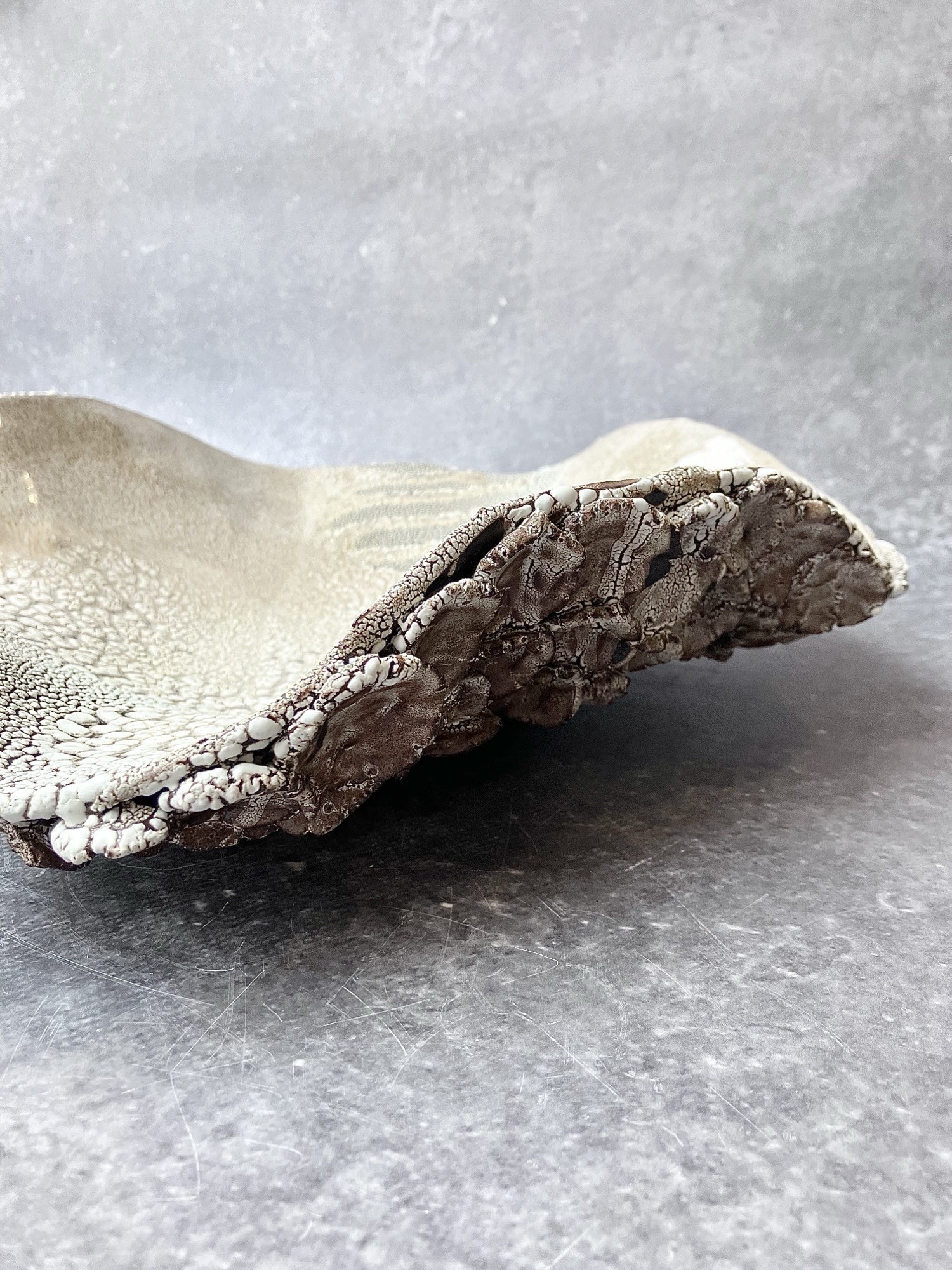 PATERA *DEEP INTO THE SEA* wygląda niczym wydobyta z morskich głębin, piękne przejścia kolorów i faktur nadają jej unikatowego wyglądu. Idealna na owoce lub jako piękna ozdoba w twoim domu.