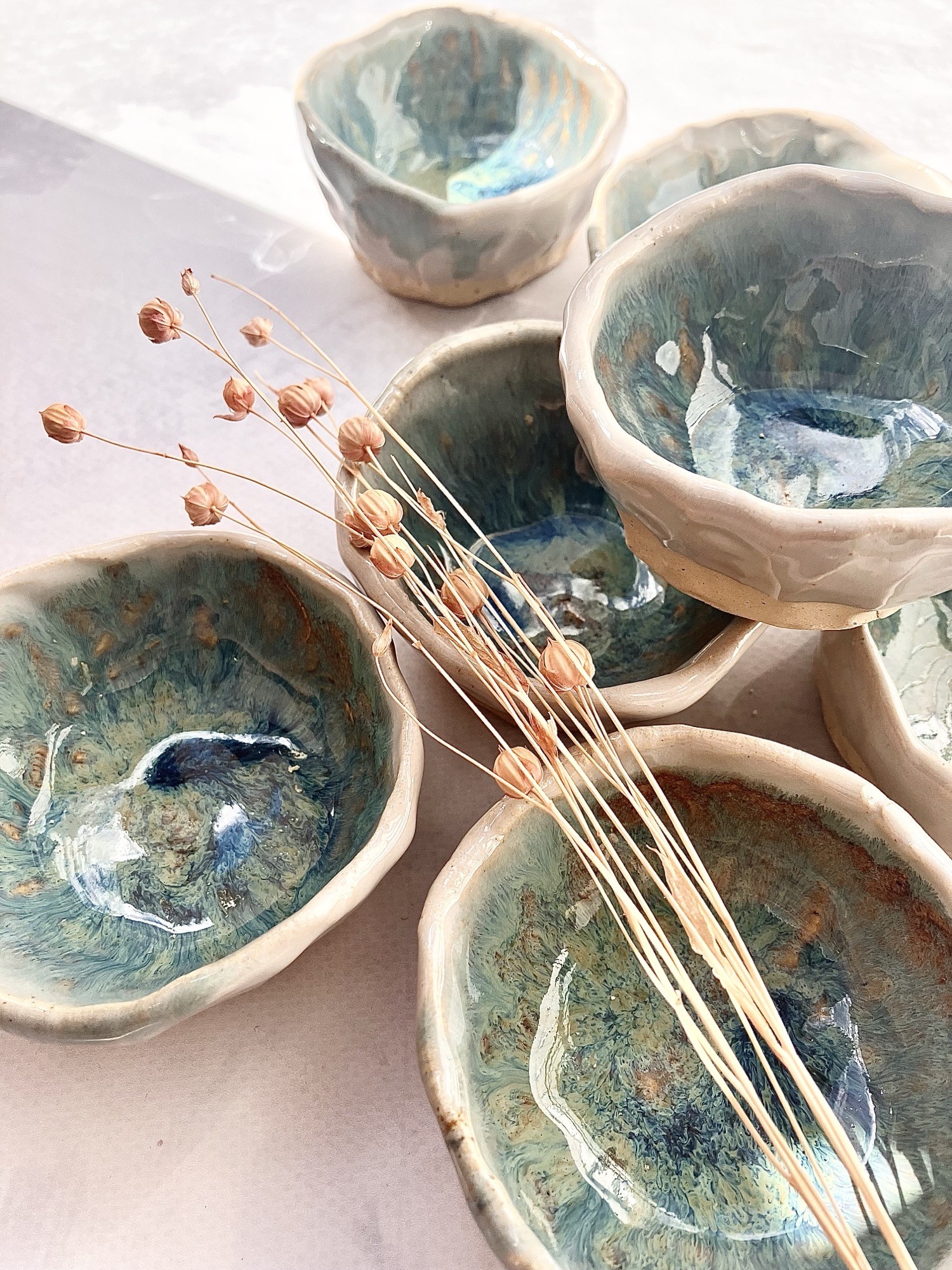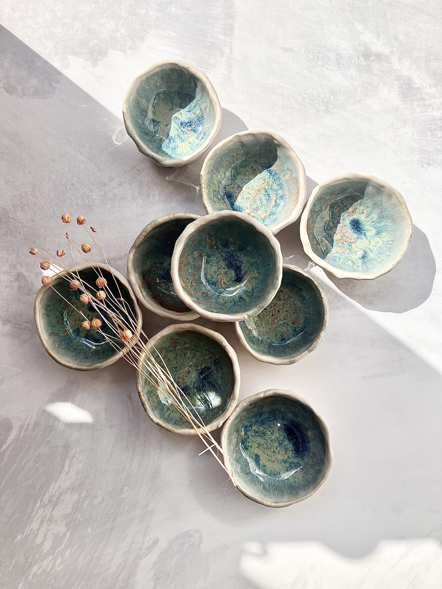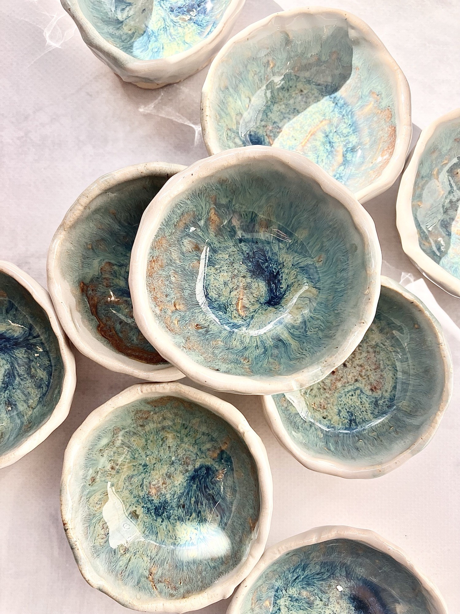 Każda sosjerka może różnić się delikatnie we wzorach i kolorach, gdyż produkty wyrabiam oraz szkliwię ręcznie. To w ceramice kocham najmocniej – wszystko ma swoją oryginalność i niepowtarzalność.