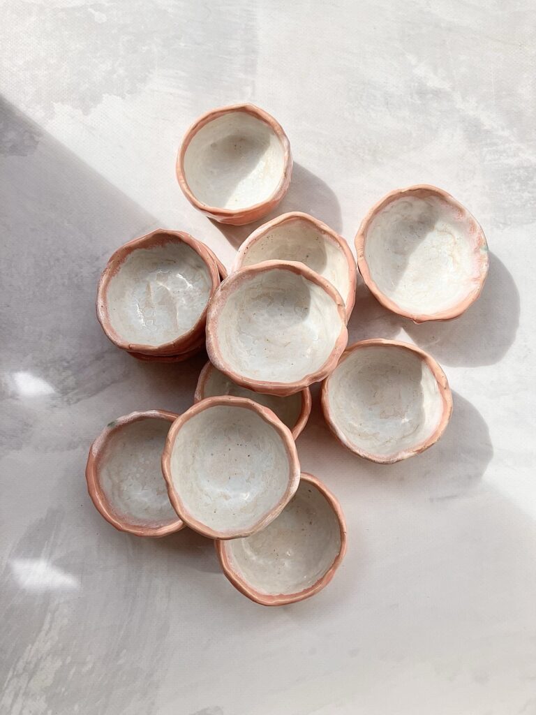 Każda sosjerka może różnić się delikatnie we wzorach i kolorach, gdyż produkty wyrabiam oraz szkliwię ręcznie. To w ceramice kocham najmocniej – wszystko ma swoją oryginalność i niepowtarzalność.