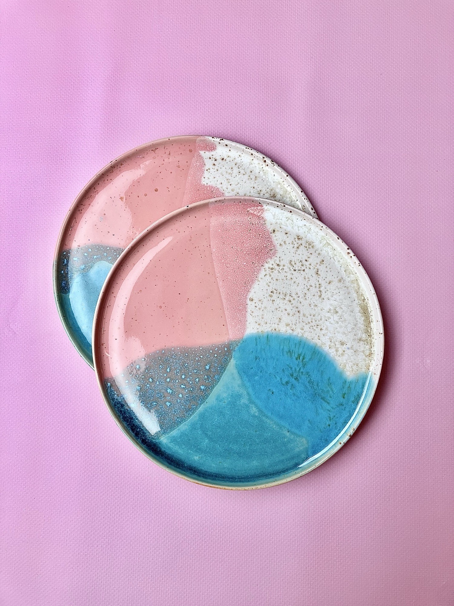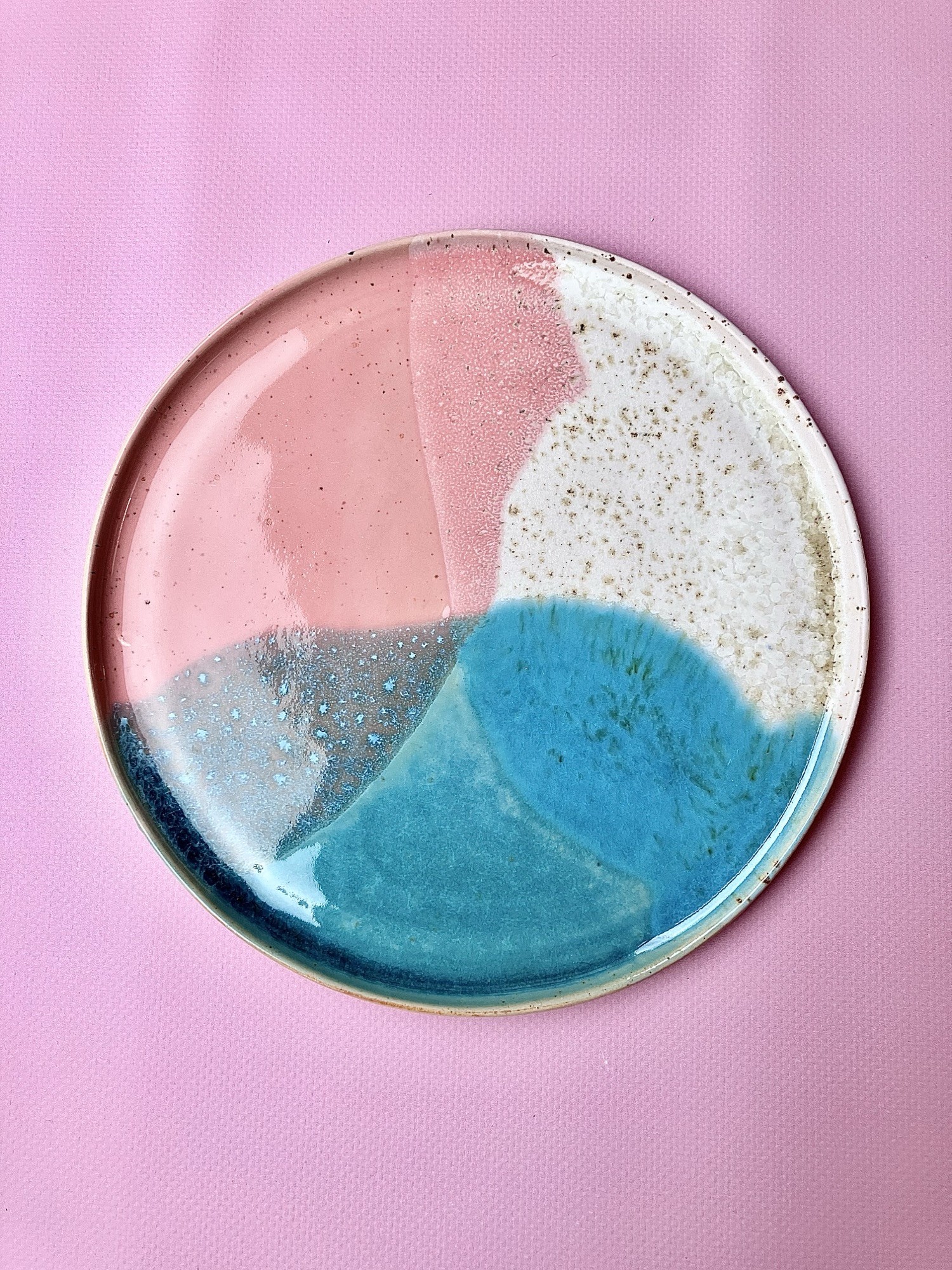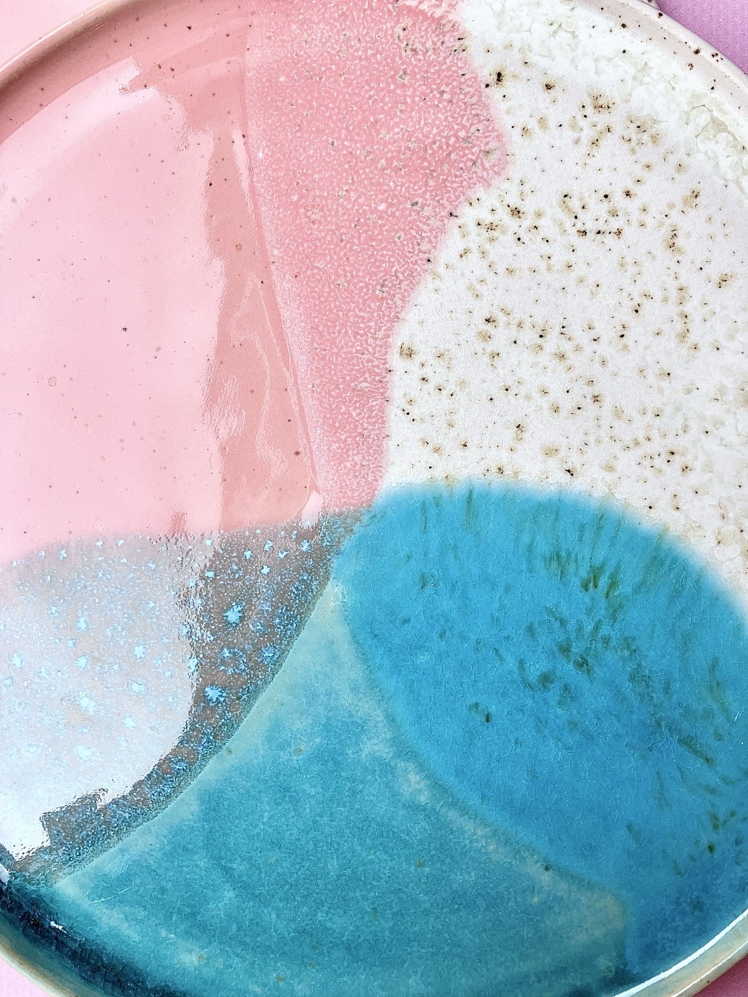 Delikatny jak pianka marshmallow, a jednocześnie wyrazisty w formie. Talerz Marshmallow zachwyca pastelową paletą różu, błękitu i kremowej bieli, które przenikają się w miękkich, organicznych kształtach. Subtelne nakrapiania dodają mu rękodzielniczego charakteru i sprawiają, że każdy egzemplarz jest niepowtarzalny.