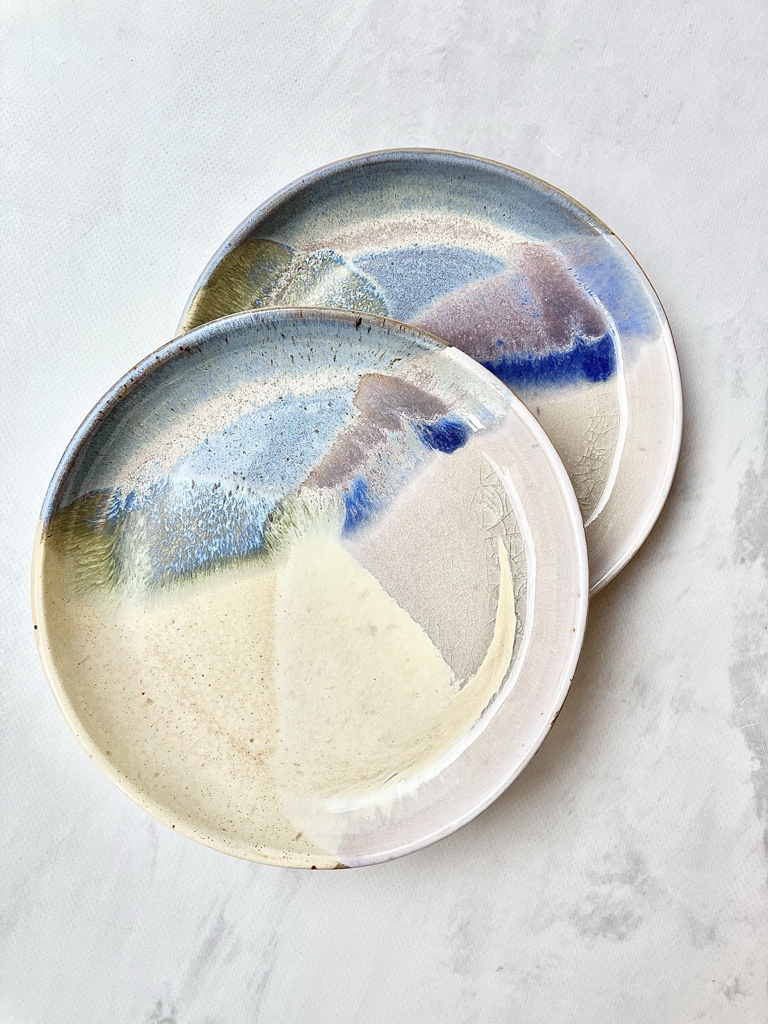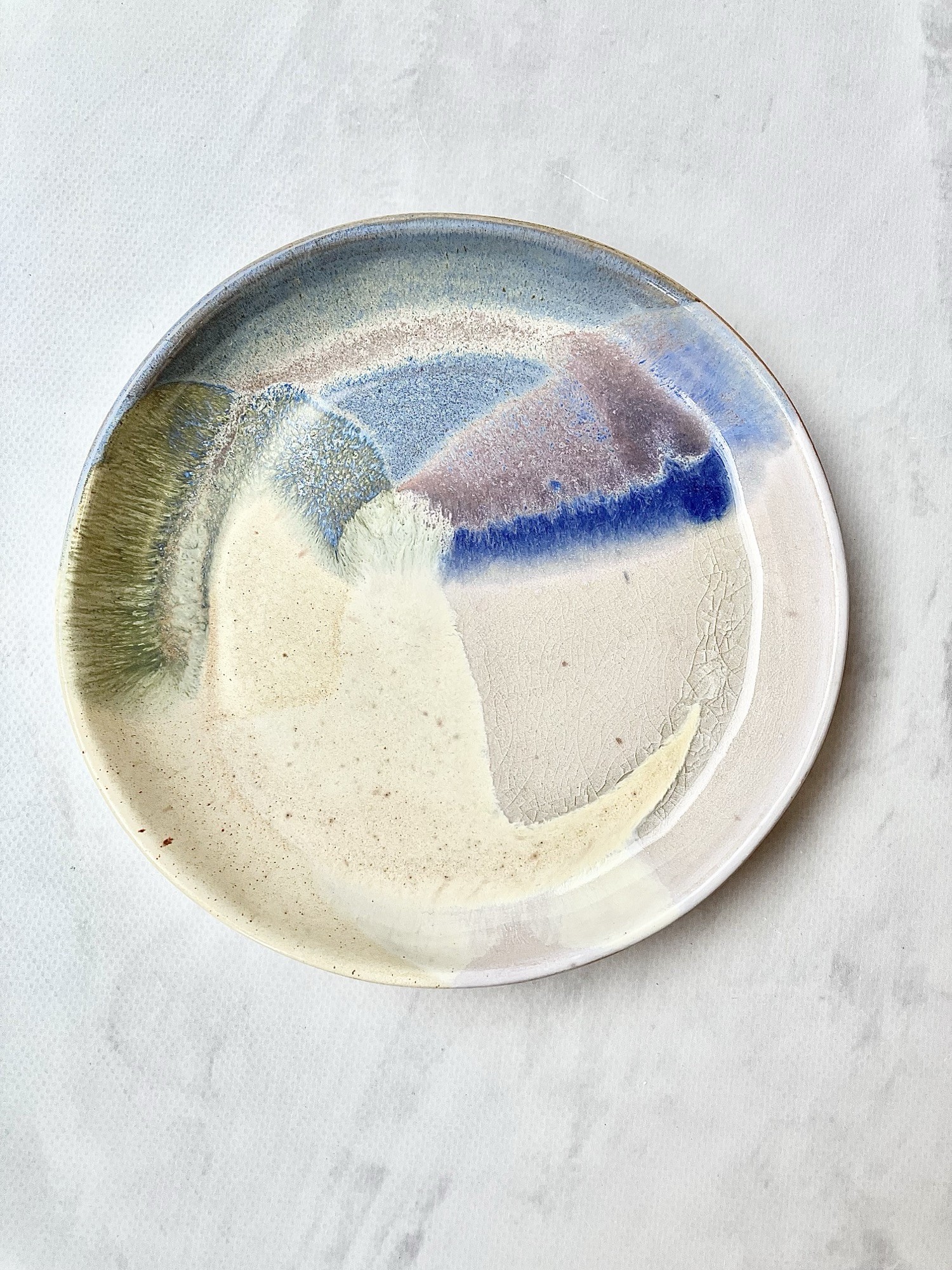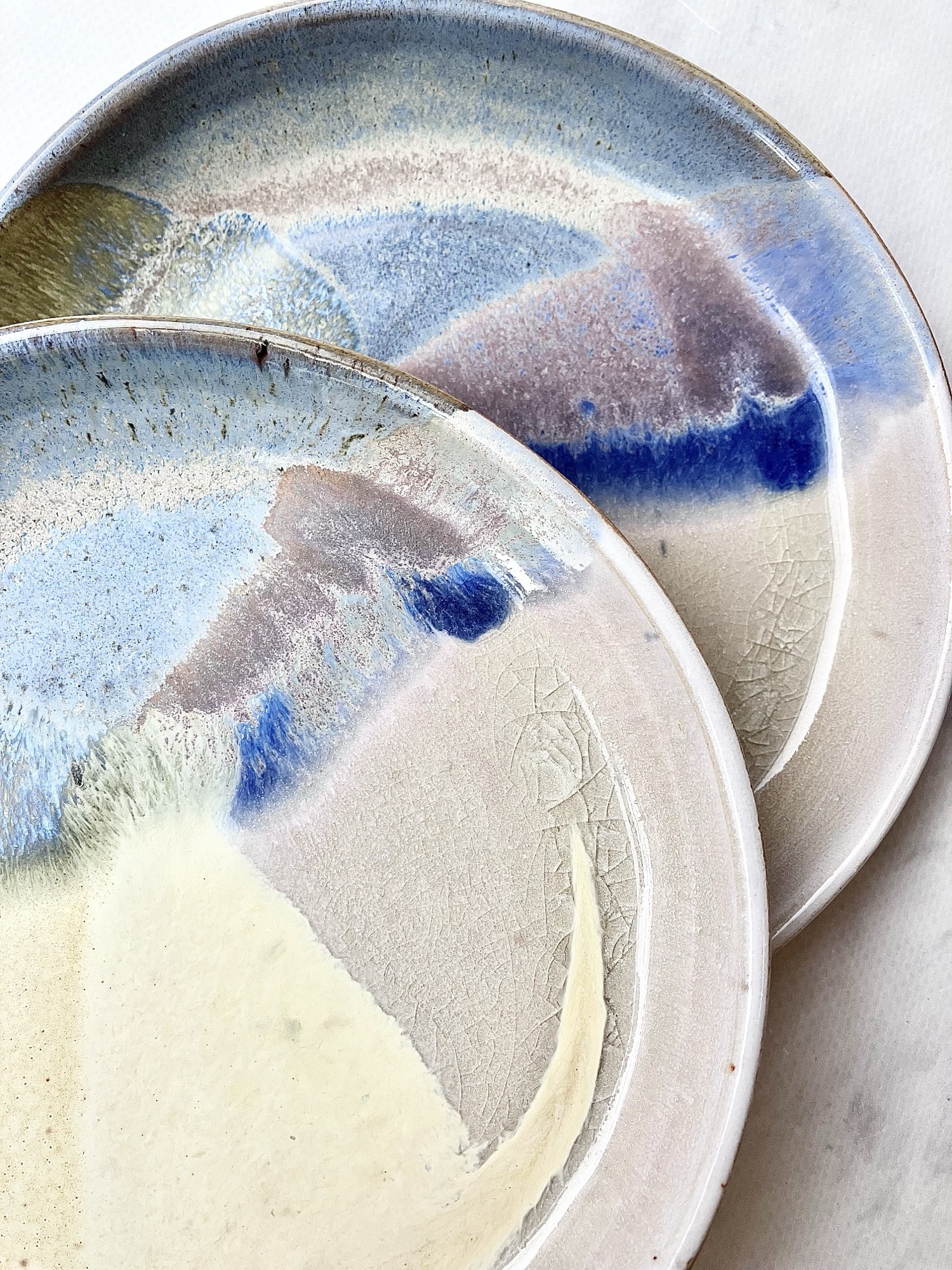 Talerzyk AURORA to ręcznie wykonany element ceramiczny inspirowany miękkimi przejściami kolorów zorzy polarnej. Delikatne połączenia kremowej żółci, błękitu, brudnego różu i kobaltu tworzą niepowtarzalny, malarski efekt, dzięki któremu każdy talerzyk jest unikatowy. Subtelne szkliwo z naturalnymi przebarwieniami i efektami krystalizacji dodaje głębi oraz organicznego charakteru.