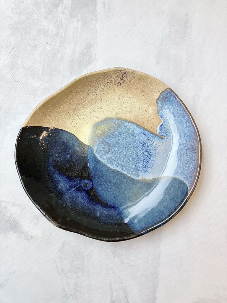 Seria PUSTYNNY ZMIERZCH powstała z zachwytu nad surowym pięknem przyrody i chwilą, w której ostatnie promienie słońca dotykają rozgrzanego piasku. Każdy talerz jest unikatowy – organiczny kształt i ręcznie nakładane szkliwa tworzą kompozycję przypominającą pejzaż pustyni tuż przed nocą.