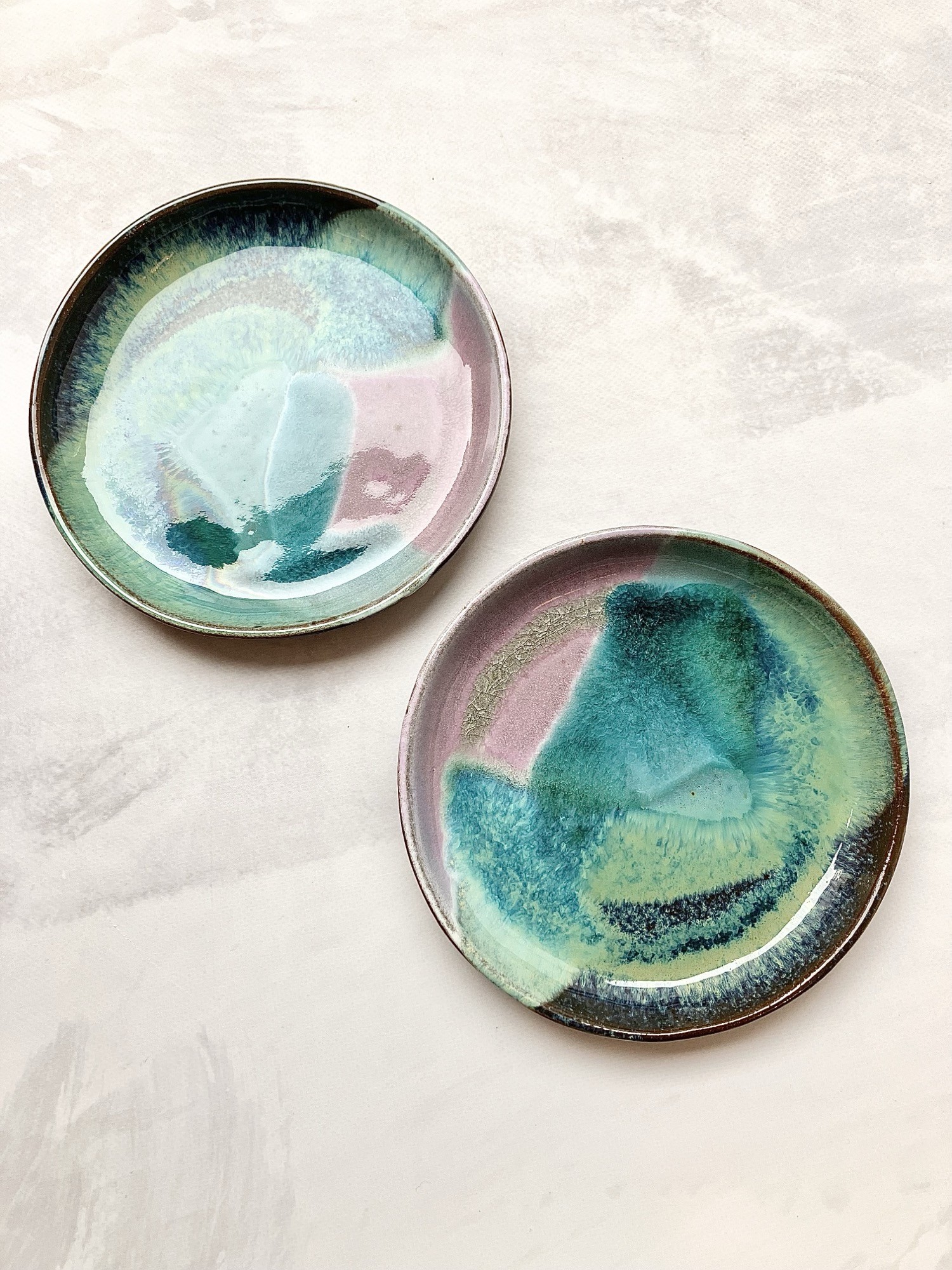 Każdy talerzyk może różnić się delikatnie we wzorach i kolorach, gdyż produkty wyrabiam oraz szkliwię ręcznie. To w ceramice kocham najmocniej – wszystko ma swoją oryginalność i niepowtarzalność.