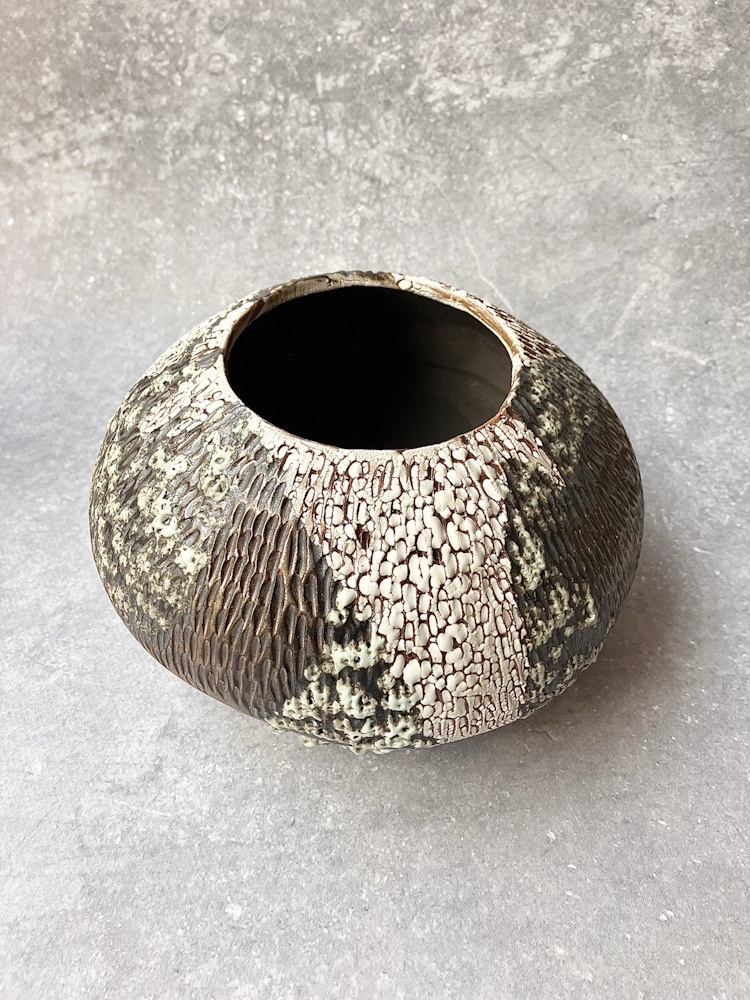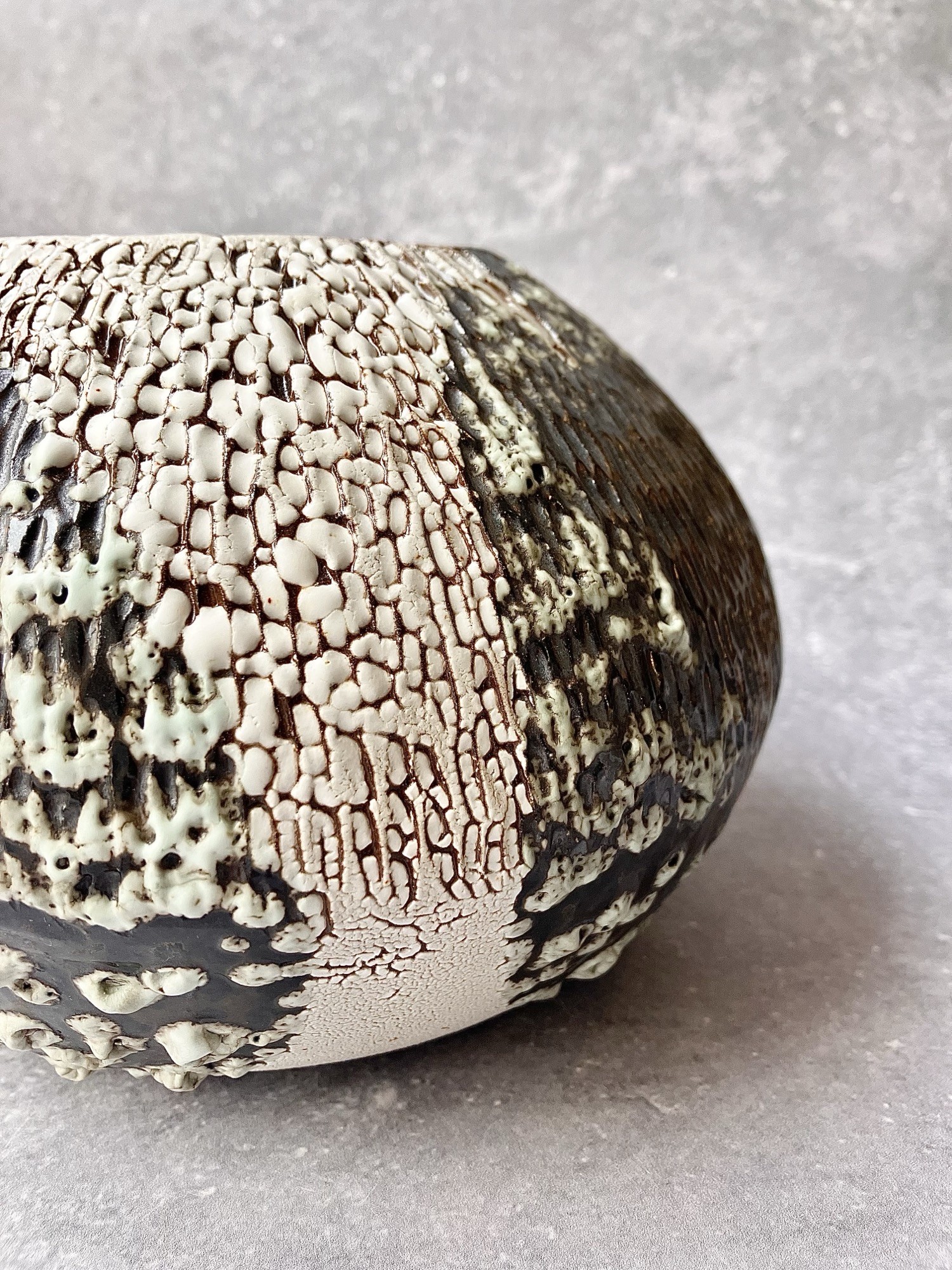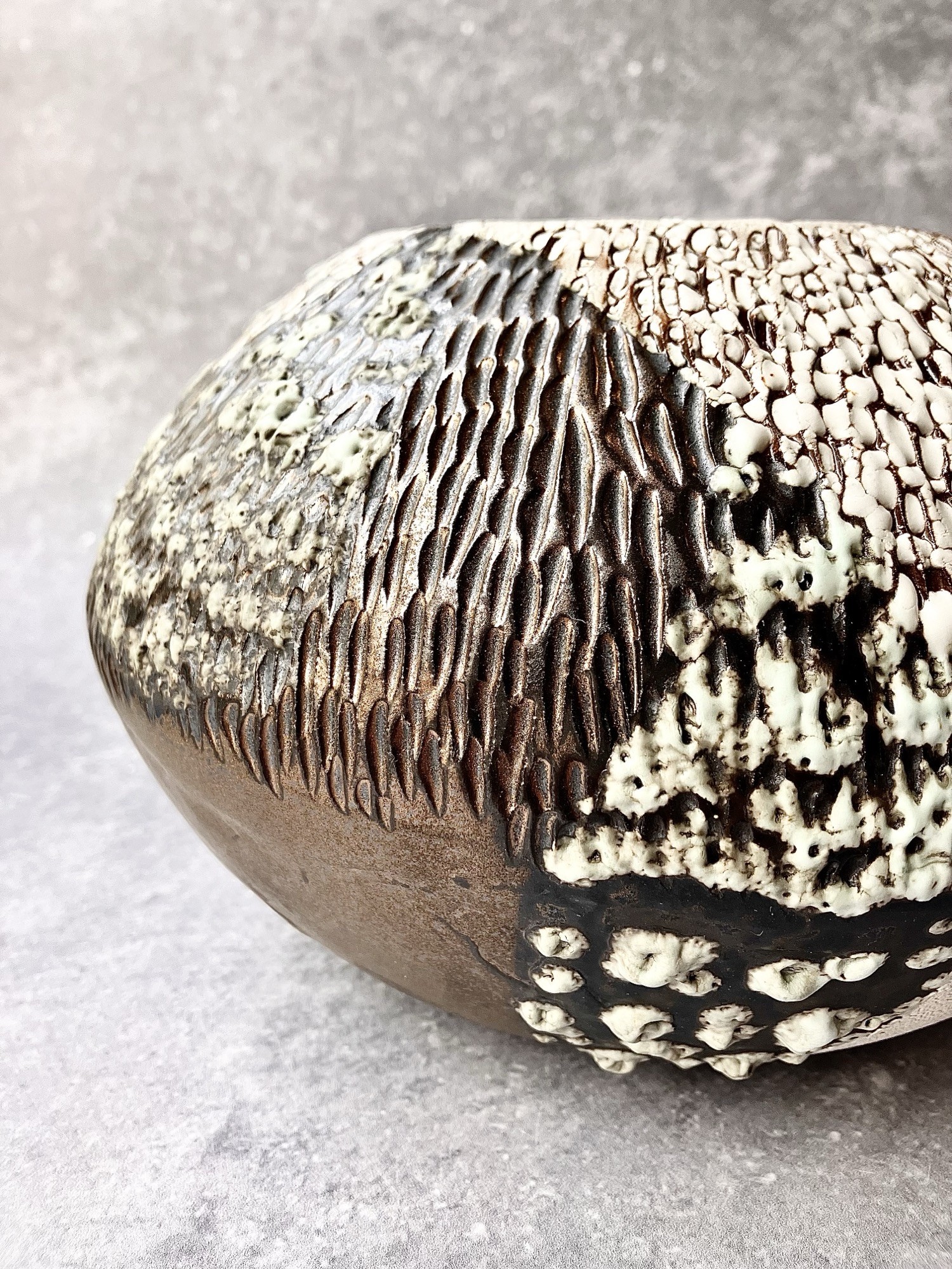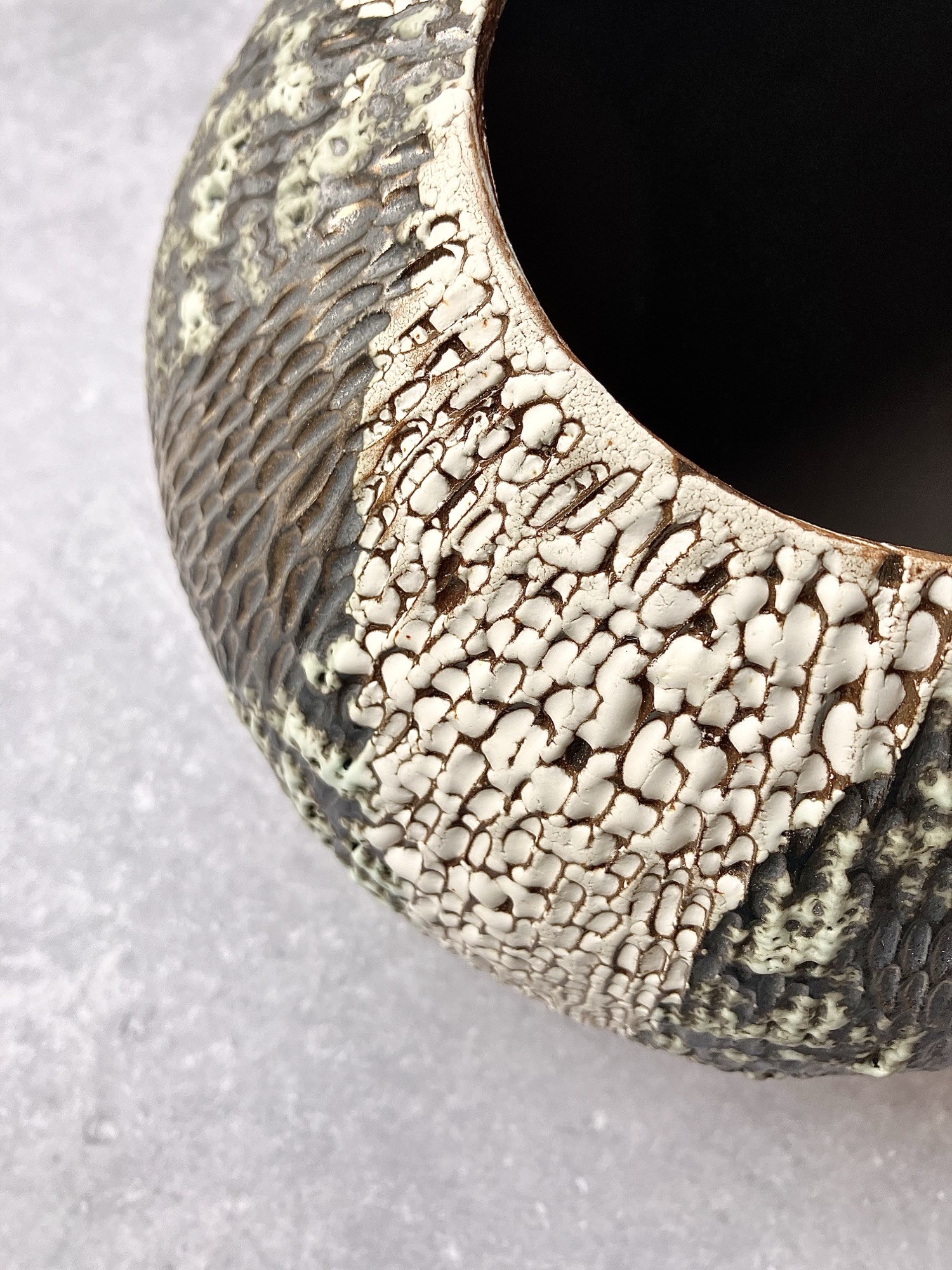 WAZON *DEEP INTO THE SEA* wygląda niczym wydobyty z morskich głębin, piękne zdobienia łączą się z niezwykłą fakturą szkliw nadając mu unikatowego wyglądu. Stanie się cudowną ozdobą w twoim w domu.